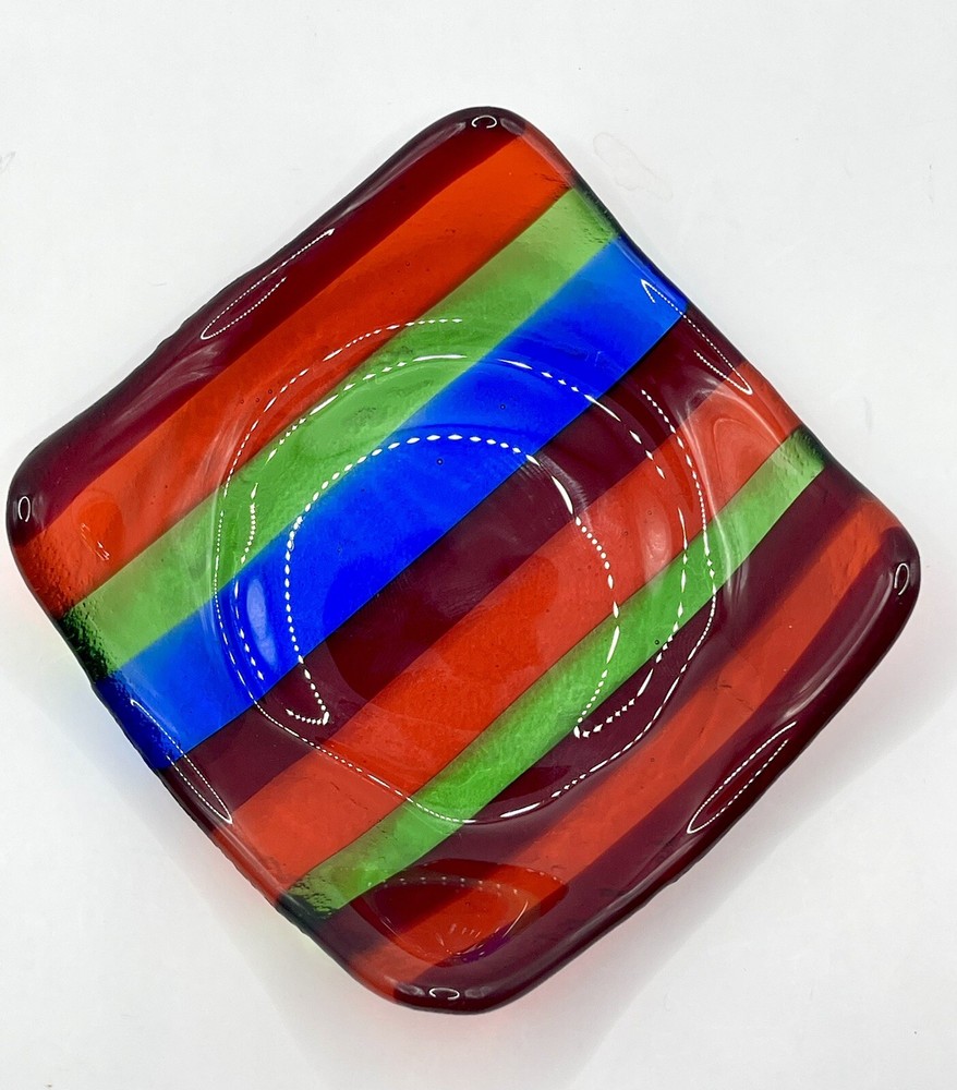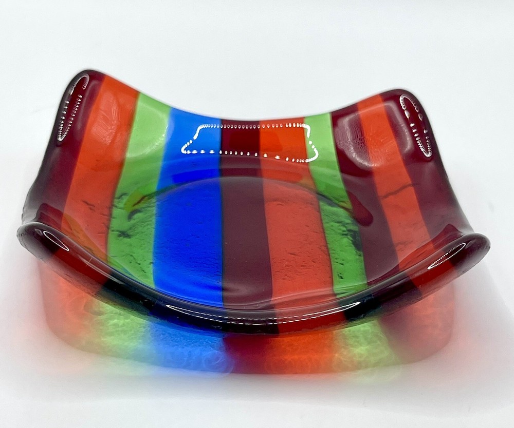 Jennifer Benjamin Fused Studio Art Glass Dish Multi Color-Artist Signed JB Used item is in very good condition. No chips or cracks. Please review photos as they are part of the description. Measurements are approximately 4" x 4" SHIPPING: Please ensure that you provide the correct address. Will only ship to Ebay addresses on file. Processing : Items ship within THREE Business Days after payment is received and confirmed. Packages ship Monday-Friday. Shipping Fee : Shipping fees are based on size and weight of item or using a flat rate option depending on best option/cost. PAYMENT: Payment is expected at completion of transaction ie: Buy it Now or Close of Auction. Thank you.