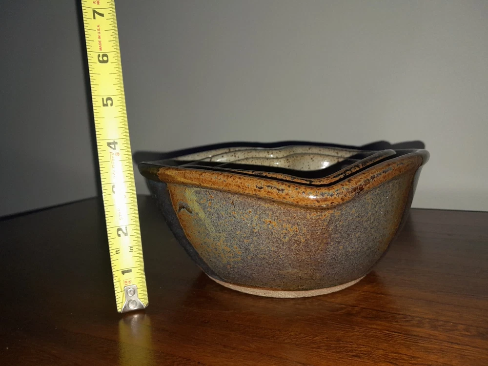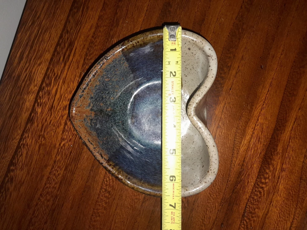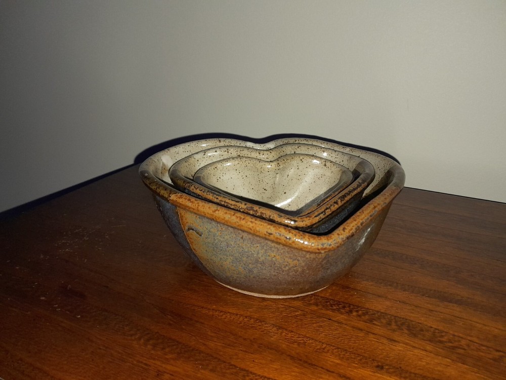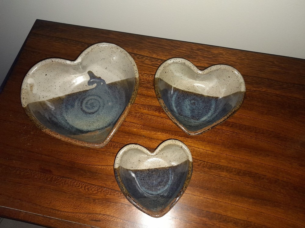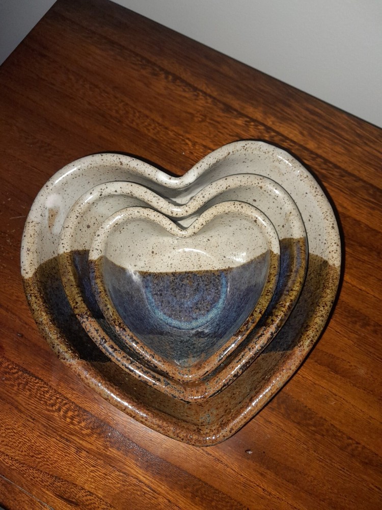Add a charming touch to your kitchen collection with the Jepson Studios 3 Handmade Heart Shaped Nesting Bowls. These vintage-style bowls are made of clay and are handmade with love. The blue earth tones and multi-color pattern make them a perfect fit for any kitchen decor. These bowls are perfect for serving food or displaying your favorite fruits on the kitchen countertop. The set of three nesting bowls in heart shape is perfect for saving space in your kitchen cabinets. Get your hands on these unique and one-of-a-kind bowls that are a perfect blend of art and pottery.