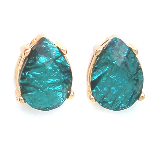 Earrings are new with tags from John Wind Studio. Gold-tone earrings feature a pear shape with opalescent hues. Earrings measure approximately 1/2 inch wide by 3/4 inch long. Earrings will come in a gift box, ready for gift giving. The John Wind Studio is a division of Maximal Art offering value priced jewelry by artist John Wind.