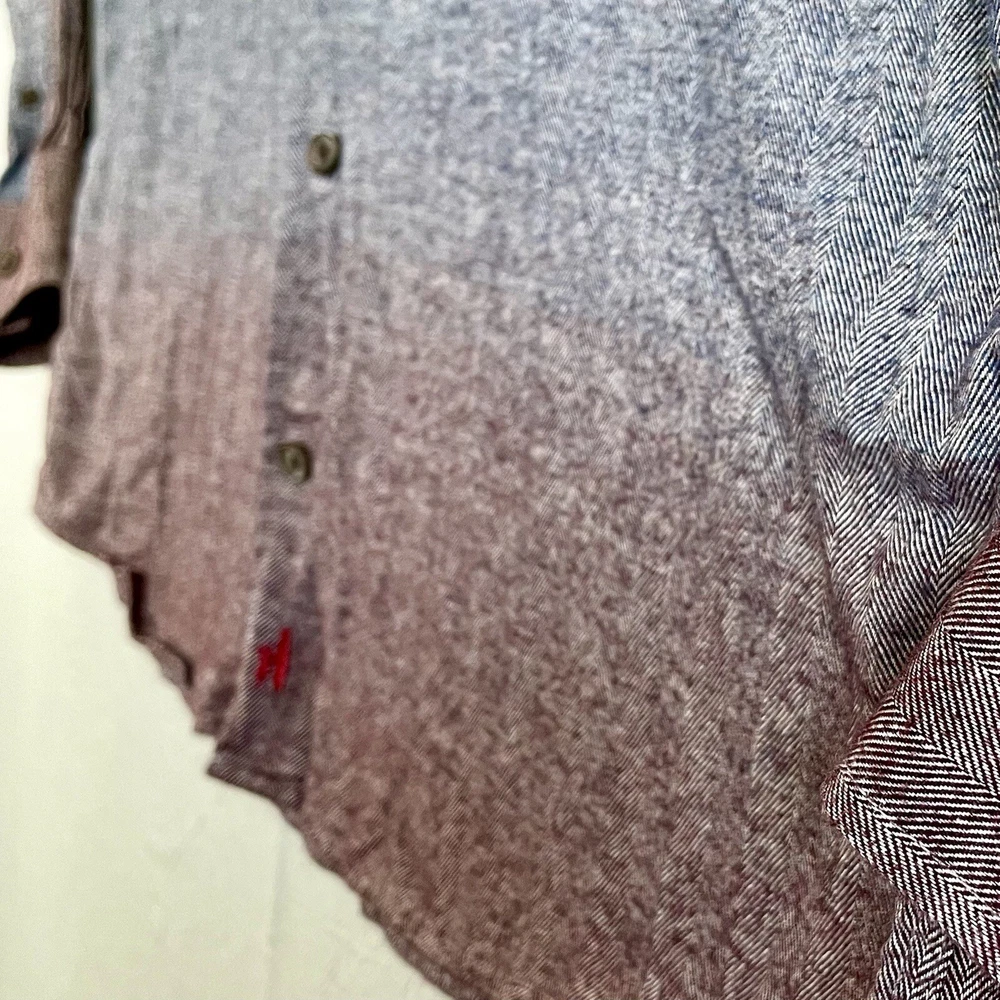 Johnnie O Shirt Men’s L Flannel Roscoe Long Sleeve Blue Red Ombré Dip Dye. Measurements laid flat: chest 24”, length 29”. Very good condition! Original MSRP $138.