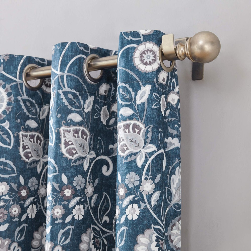 Botanical design on a woven textured fabric with Thermal Insulated Room Darkening technology Energy Efficient design reduces energy lost through your windows by up to 40% Thermal insulation helps you keep the summer heat and winter chill out of your home Noise reduction helps you get a sounder, more uninterrupted sleep Silver metal grommet top fits a standard curtain rod for easy hanging