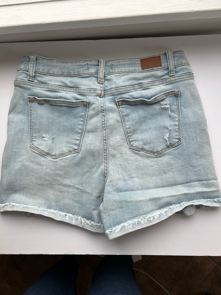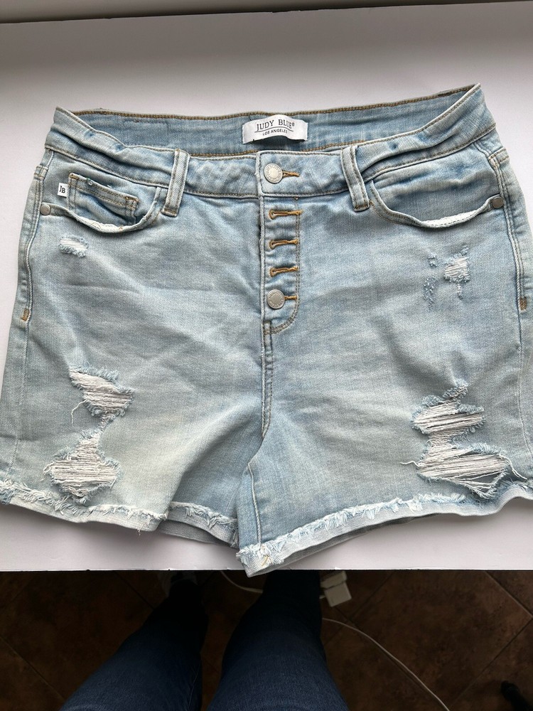 Get ready for a summer of color with these Judy Blue cut-off denim shorts! The denim blue distressed pattern creates a fun and vibrant look, perfect for a day at the beach or a casual outing. The 5-pocket design with button closure and belt loops provides both comfort and convenience, while the frayed detailing and light fabric wash add a touch of bohemian flair. These shorts are part of the Judy Blue product line and feature the brand's signature logo accents. They are made from high-quality denim fabric and are machine washable for easy care. With a regular fit and mid-rise, these shorts are perfect for any occasion, whether you're looking for a comfortable and stylish option for walking or simply want to add a pop of color to your wardrobe. (A38)