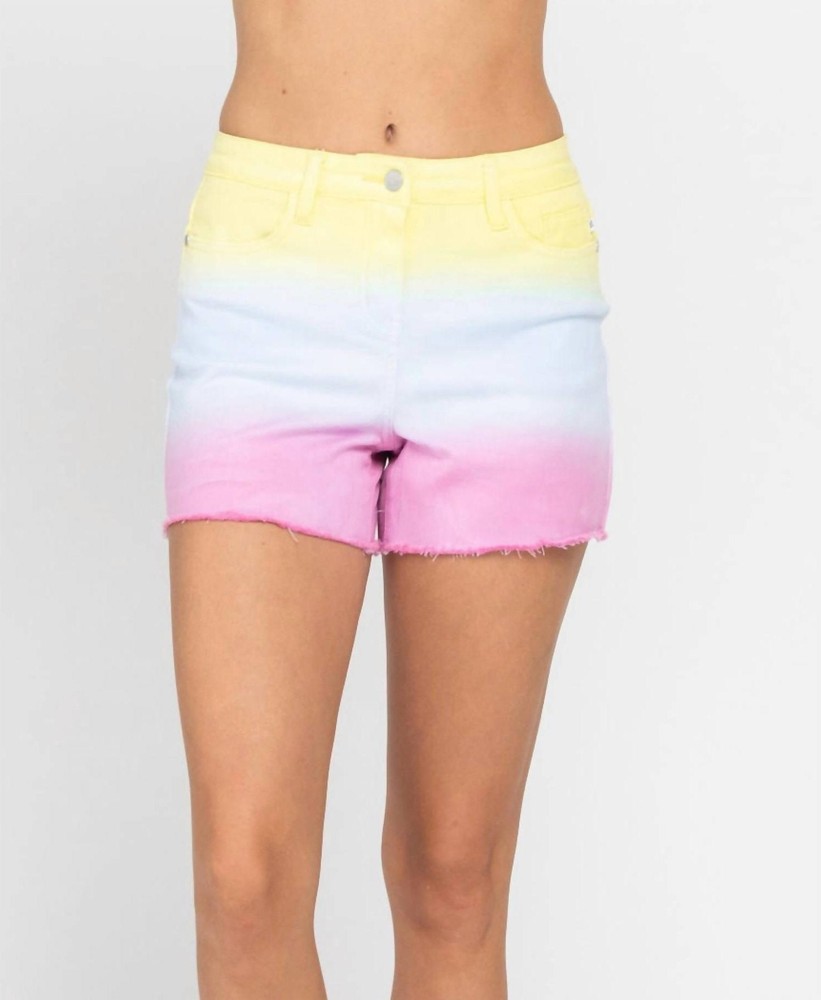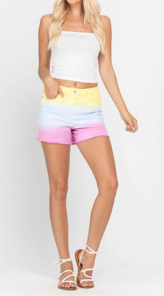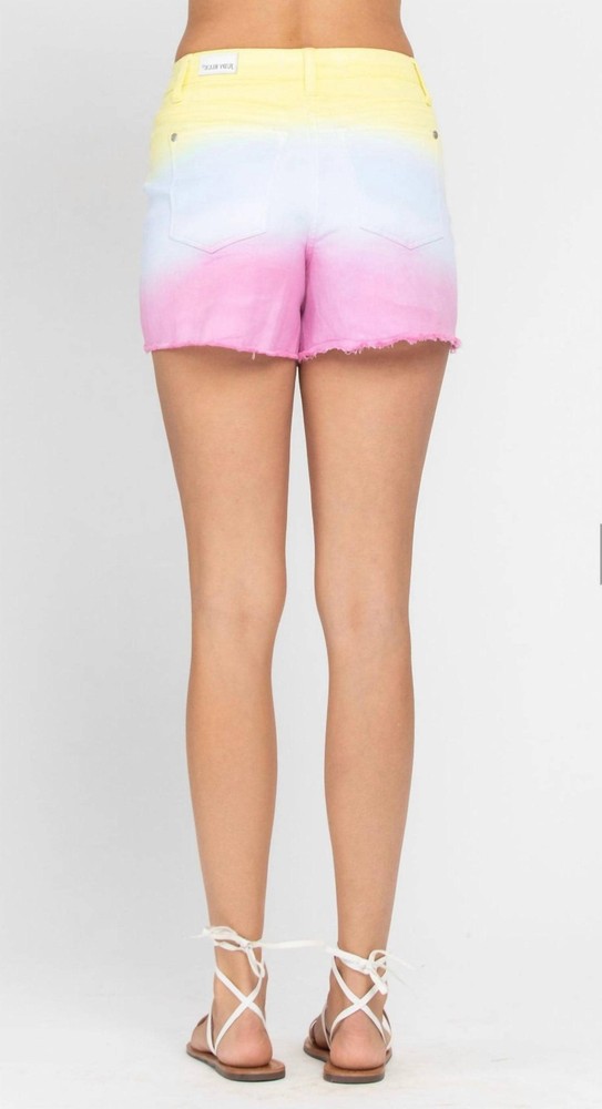 Jean shorts so versatile, you can literally wear them with anything. Dip tie-dye design. High waist fit. Cut-off hem. Measurements: Inseam: 4", Rise: 10". True to size. 76% Cotton, 17% Rayon, 5% Polyester, 2% Spandex. Color: Multi Color No offers or bids: all items are already at max discount Final Sale No Returns or Exchanges!