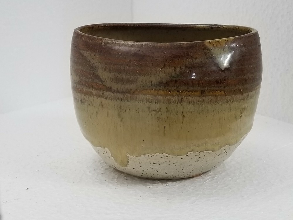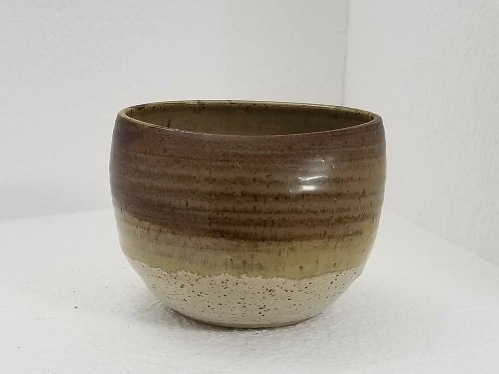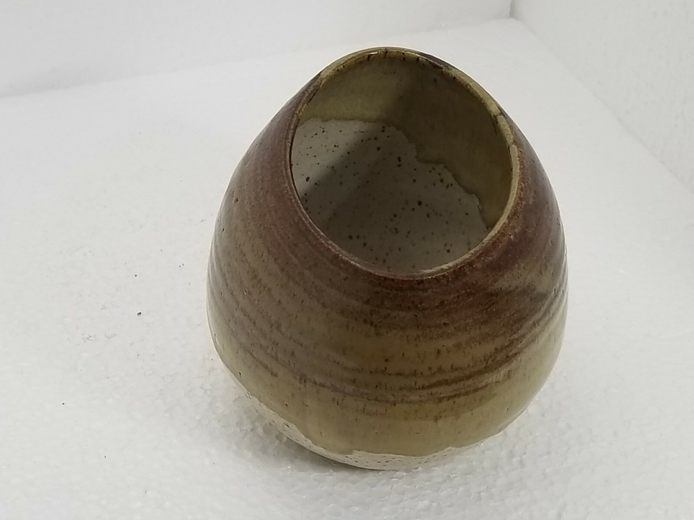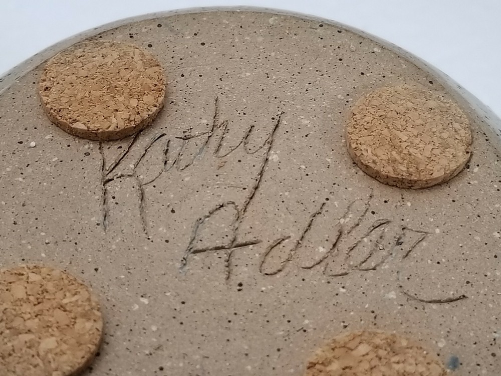 Kathy Adler Pot Studio Art. Condition is "Used". I like the lines and glazing technique of the 3 colors blending together signed in the clay on the bottom. has 4 pads on the bottom so it won't scratch your furniture. Shipped with USPS Priority Mail. 3 1/2" tall, 5" long.