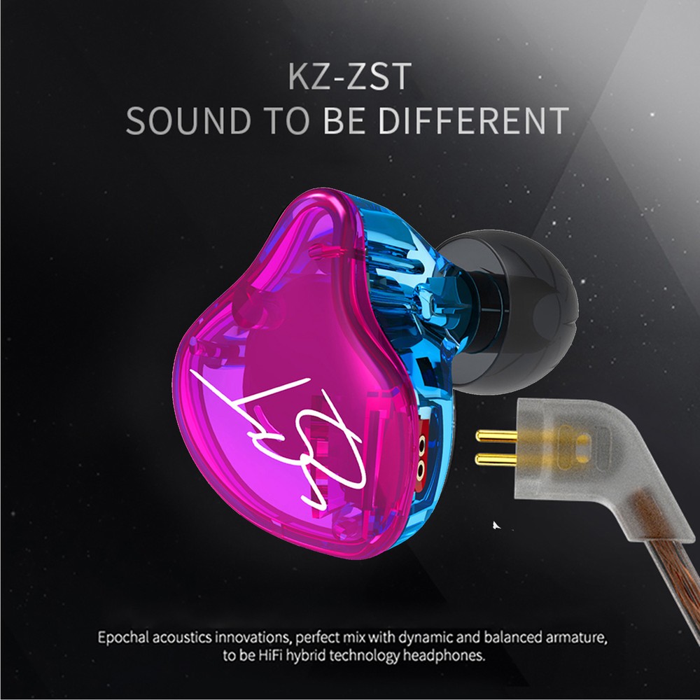 Features: Hybrid Dynamic and Armature Drivers: ZST adopts a hybrid dynamic driver and balanced armature driver unit (1DD+1BA), integrating the wide sound field and high resolution, bringing powerful dynamic bass and highly sensitive treble. Comfortable Wearing Experience: Light-weight in-ear headphones with 3 sizes of silicone earcaps ensure a long-time comfortable wearing. Around-the-ear design reduces the burden on your ears and brings stability. Detachable Replacement Cable: Top high-quality 6N OFC upgrade cable with double 0.75mm gold-plated needle plug, soft and smooth, tangle-free and durable, excellent in appearance and performance. Strong Compatibility: The 3.5mm gold-plated jack prevents oxidation and reduces signal loss, providing better audio restoration. This headphone is designed for almost all 3.5mm audio devices. Suitable for Sports: Sports design guarantees 100% wearing stability and comfort when walking, running, climbing, driving, hiking, cycling, and other outdoor sports. With and without in-line control & mic versions can be chosen for your needs. Specifications: Model Number: ZST Driver Unit: 1DD+1BA hybrid driver unit (Each Earbud) Frequency Response: 20Hz-20KHz Resistance: 18Ω Sensitivity: 106dB Plug: L-shaped 3.5mm Needle Diameter: 0.75mm Microphone: With, without (Optional) Color: Purple Cable Length: Approx. 1.25m / 4.1ft Headphone Weight: Approx. 20g / 0.73oz Package List: 1 * ZST Earphone 2 * Pairs of Earcaps 1 * User Manual (English)