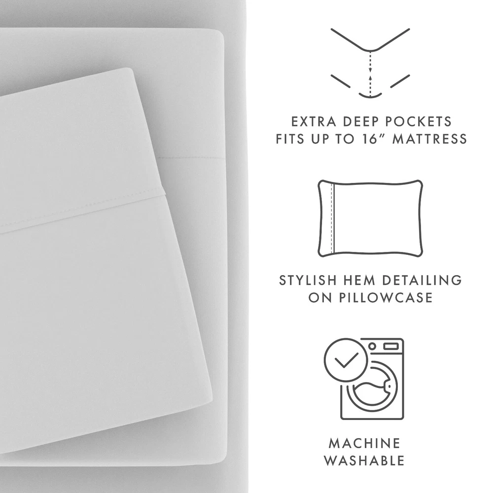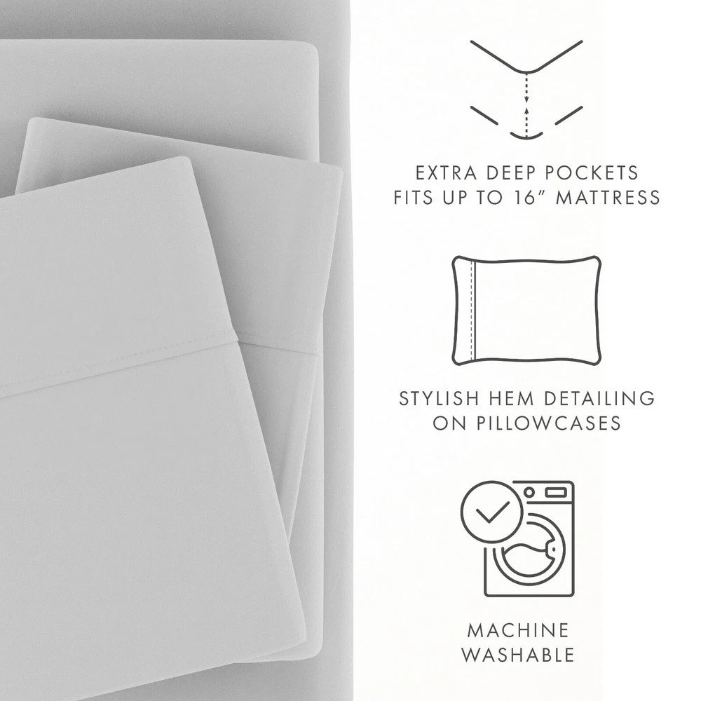 Kaycie Gray Basics Softest Microfiber 4PC Sheets Set Deep Pocket Breathable, Super-Soft and Completely Comfortable. 4-Piece Deep Pocket Sheets for Over Sized Mattresses. Treat yourself to a little piece of luxury with these amazingly soft bed sheets by ienjoy Home. Made from double-brushed microfiber fabric for an extra soft feel that will leave you feeling refreshed and completely rested in the morning. These sheets stay cool in the summer, warm in the winter and their deep pocket fitted sheet has elastic all the way around for a snug fit. Softer than 1800 thread count Egyptian cotton and hypoallergenic, these sheets will have you feeling like you're sleeping on a cloud! Features Breathable, Super-Soft and Completely Comfortable. 4-Piece Deep Pocket Sheets for Over Sized Mattresses. Treat yourself to a little piece of luxury with these amazingly soft bed sheets. Made from double-brushed microfiber fabric for an extra soft feel that will leave you feeling refreshed and completely rested in the morning. These sheets stay cool in the summer, warm in the winter and their deep pocket fitted sheet has elastic all the way around for a snug fit. Softer than 1800 thread count Egyptian cotton and hypoallergenic, these sheets will have you feeling like you're sleeping on a cloud! Material: Double-brushed microfiber for outstanding comfort. Superior Weave for durability and buttery-soft touch. Made of ultra-soft and breathable 90 GSM microfiber. Easy Care: Machine wash cold, Tumble dry low, Fade Resistant, Wrinkle Free, No Ironing Necessary. Package Includes: 1 Duvet Cover & 2 Pillow covers (Twin/Twin Extra Long set comes with 1 Pillow Cover). What is included / Dimensions 1 Twin Fitted Sheet: 39’’W x 75’’ L +16 1 Twin Flat Sheet: 66’’W x 96’’L 1 Standard Pillowcase: 20’’W x 30’’ L 1 TwinXL Fitted Sheet: 39" W x 81” L +16" 1 TwinXL Flat Sheet: 66" W x 104" L 1 Standard Pillowcase: 20’’W x 30’’ L 1 Full Fitted Sheet: 54" W x 75" L + 16" 1 Full Flat Sheet: 81" W x 96" L 2 Standard Pillowcases: 20’’W x 30’’ L 1 Queen Fitted Sheet: 60" W x 80" L + 16" 1 Queen Flat Sheet: 90" W x 102" L 2 Standard Pillowcases: 20’’W x 30’’ L 1 King Fitted Sheet: 78" W x 80" L + 16" 1 King Flat Sheet: 102" W x 108" L 2 King Pillowcases: 20’’W x 40’’ L 1 Calking Fitted Sheet: 72" W x 84" L + 16" 1 Calking Flat Sheet: 105" W x 102" L 2 King Pillowcase: 20’’W x 40’’ L Contact us We can be contacted at any time through eBay messages if you have any questions, comments or product requests. We will respond to you within 24 hours and do our best to help you out! We encourage our customers to contact us with any questions or concerns! We'd like to be sure you are completely satisfied with your purchase. Returns ienjoy Home offers a 30-day money-back guarantee on all items. Free return shipping. If you need to return an item for a refund, please contact us within the return period. All ienjoy Home sales include our 30-day money-back guarantee. Items may have additional warranty coverage. To determine if your purchase is covered by our manufacturer warranty, please contact us for further assistance. Shipping All orders ship within 1 business day. Standard shipping is FREE on all items shipped within the United States. For express and international shipping, please contact us for further assistance. (Unfortunately we do not ship to Alaska or Hawaii). Please keep in mind, if placed over the weekend your order will ship out the following business day. When your order ships, you will be emailed tracking information. International shipping is handled by eBay's Global Shipping program. For more information please contact eBay directly. Recomended Items from Kaycie Gray store Comforter Kaycie Gray Hotel Collection Luxury 8PC Comforter set $25.99 Luxury Sheets Rayon From Bamboo Luxury 4PC Soft Sheets Set by Kaycie Gray Hotel Collection $44.99 Solid Sheets Luxury 4PC Sheets Set Comfort by Kaycie Gray Hotel Collection $16.99 Comforter set Kaycie Gray Fashion Ultra Soft Desert Stripe 3PC Reversible Duvet Cover $17.99 Visit our store for more products Kaycie Gray by iEnjoy Home .
