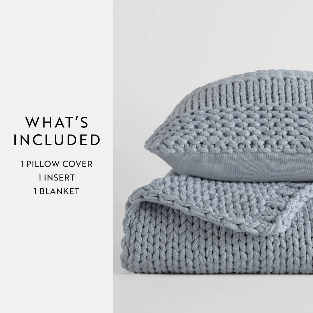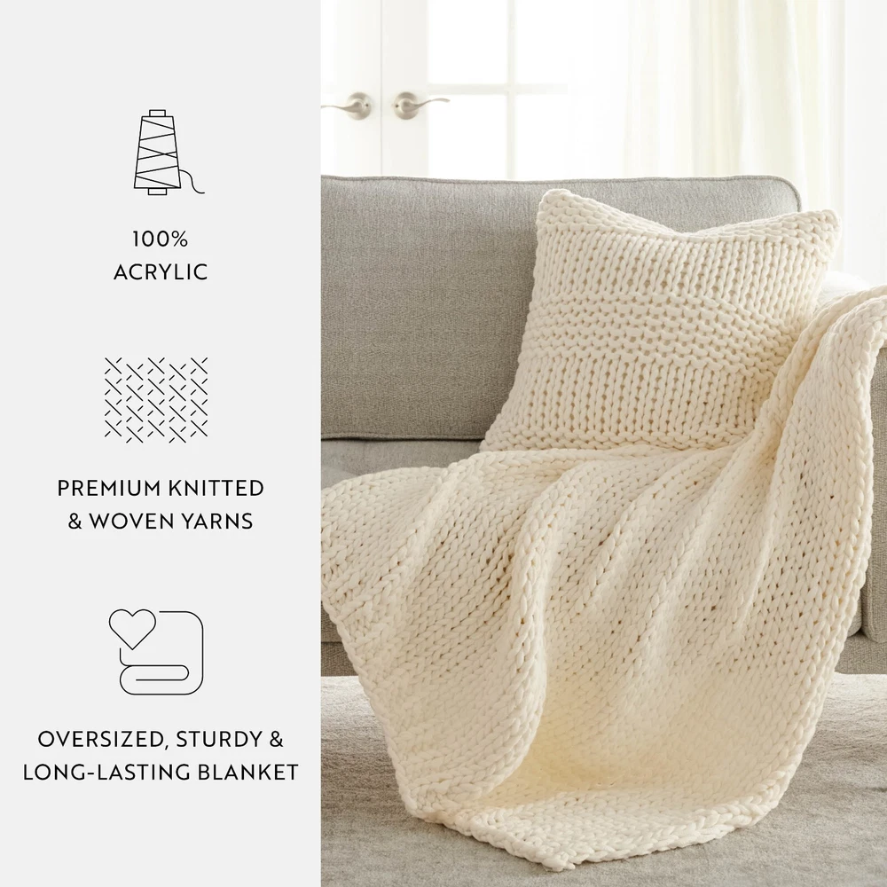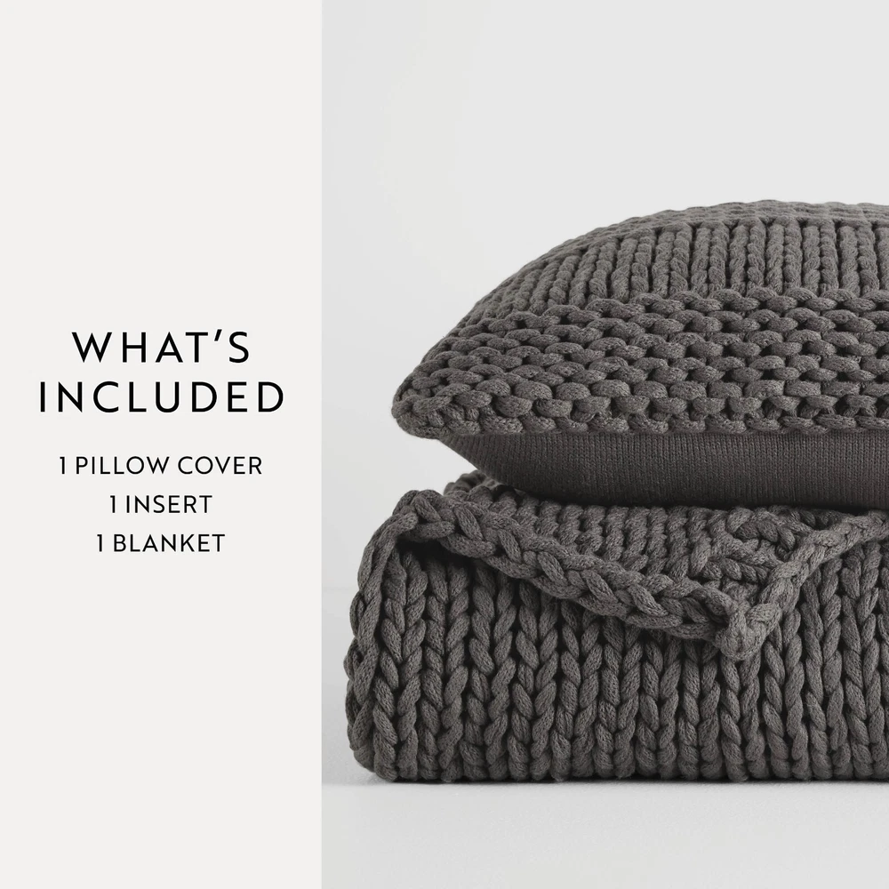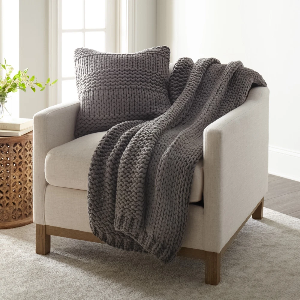 Chunky Knit Throw Blanket and Pillow by Kaycie Gray Fashion Collection Introducing a new lineup of luxury sheets, comforters and everything you need for your bed. Every product is made of the finest, most durable materials, while being machine washable. We are dedicated to providing products and services that provide you with ultimate luxury, comfort, and high-end finishes. We take pride in the level of care we put into each and every one of our products. For us less is never more; we use only top quality materials to ensure that your new bedding collection will last a lifetime. Our goal is to provide you with the best possible experience when it comes to buying luxury bedding. Features Add a cozy new throw to your bed with this chunky knit blanket and pillow, perfect for adding an extra touch of comfort and style. Made from 100 percent high quality acrylic, this blanket is super soft to touch and perfect for snuggling up with while you drift off to sleep or settle in for a movie night. Available in several lovely shades, you're sure to find the right fit for your room or sleep space! Material: Made from 100 percent ultra soft anti-shrinking and anti-pilling acrylic. Perfect option for those with allergies or sensitive skin! Care: Dry clean only; Do not bleach or iron. Stylish: Suitable for a wide range of styles such as, mid century modern, coastal, beach house, farmhouse, glam, industrial, rustic, shabby chic, modern, boho, Scandinavian, traditional, French country, contemporary and transitional. Package Includes: 1 Throw blanket - available in one size only - dimensions: 47" x 59" and 1 Throw Pillow with Cover - dimensions 20" x 20" Contact us We can be contacted at any time through eBay messages if you have any questions, comments or product requests. We will respond to you within 24 hours and do our best to help you out! We encourage our customers to contact us with any questions or concerns! We'd like to be sure you are completely satisfied with your purchase. Returns ienjoy Home offers a 30-day money-back guarantee on all items. Free return shipping. If you need to return an item for a refund, please contact us within the return period. All ienjoy Home sales include our 30-day money-back guarantee. Items may have additional warranty coverage. To determine if your purchase is covered by our manufacturer warranty, please contact us for further assistance. Shipping All orders ship within 1 business day. Standard shipping is FREE on all items shipped within the United States. For express and international shipping, please contact us for further assistance. (Unfortunately we do not ship to Alaska or Hawaii). Please keep in mind, if placed over the weekend your order will ship out the following business day. When your order ships, you will be emailed tracking information. International shipping is handled by eBay's Global Shipping program. For more information please contact eBay directly.