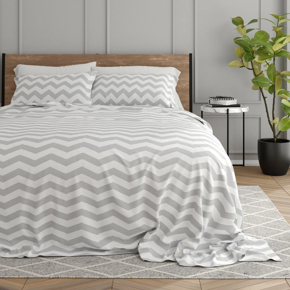 Kaycie Gray 4-Piece Ultra Soft Microfiber Arrow Bed Sheet Set
