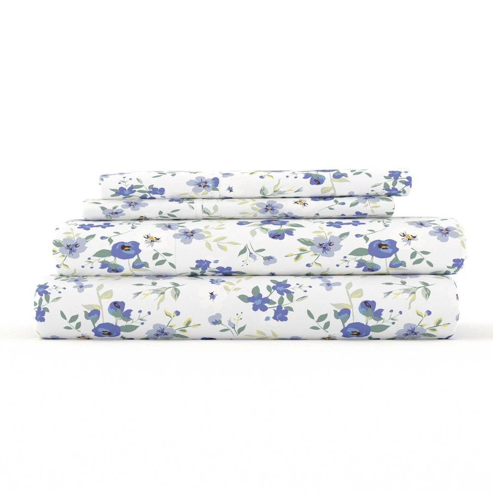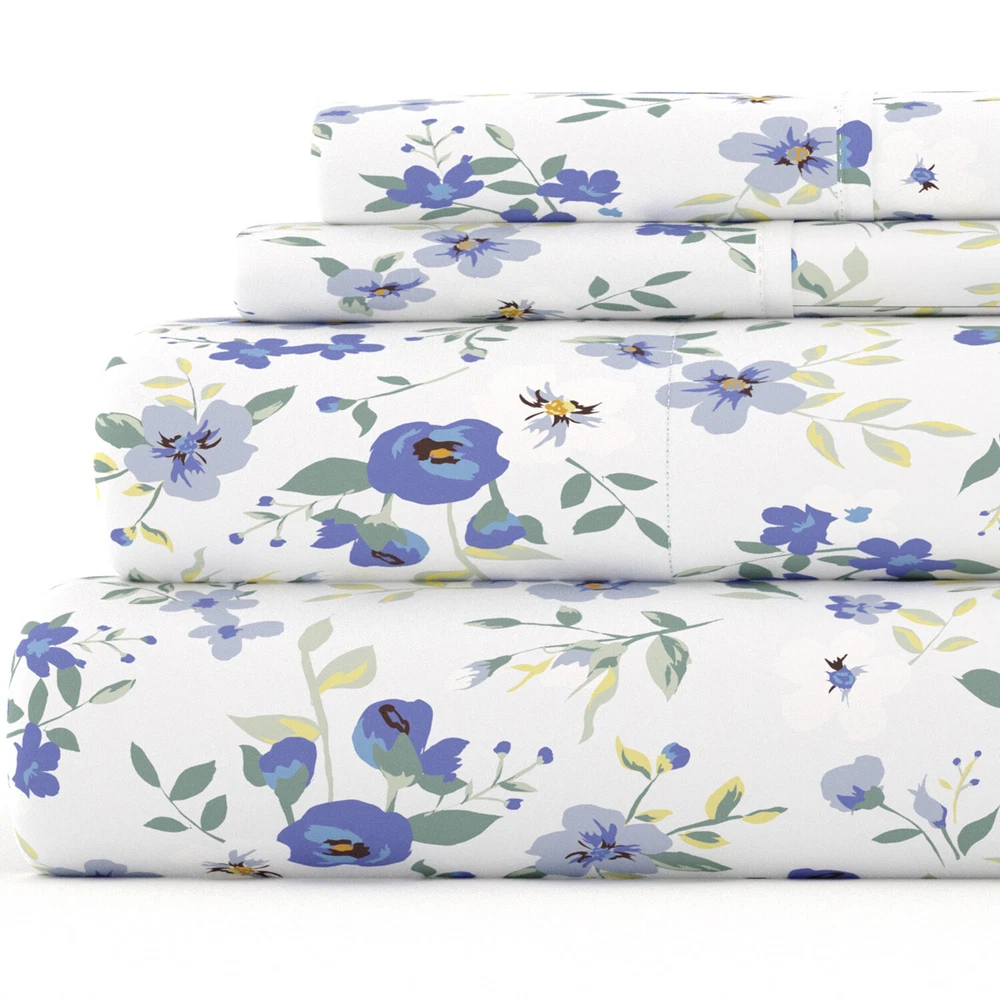 Kaycie Gray Fashion 4 Piece Ultra Soft 100% Microfiber Blossoms Bed Sheet Set