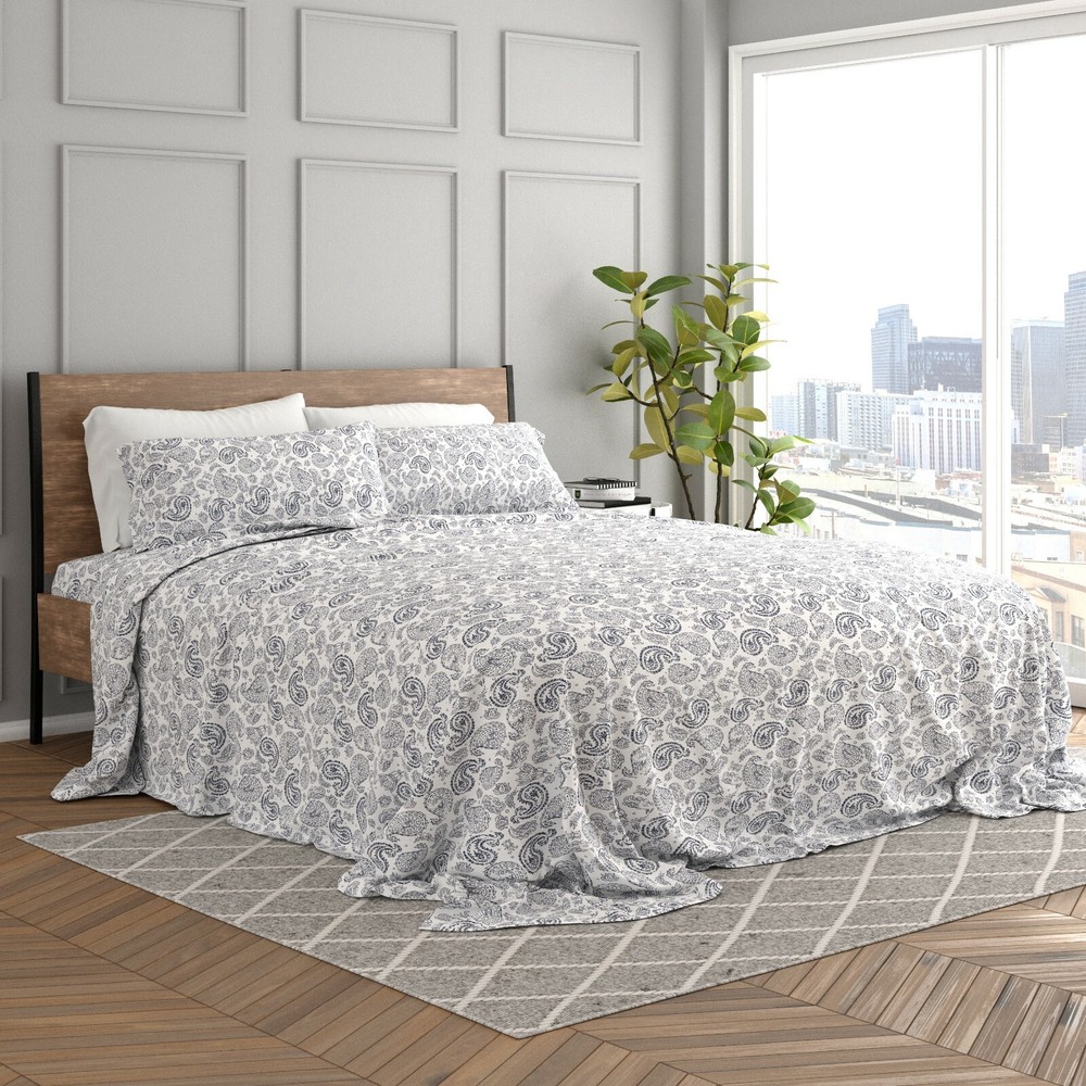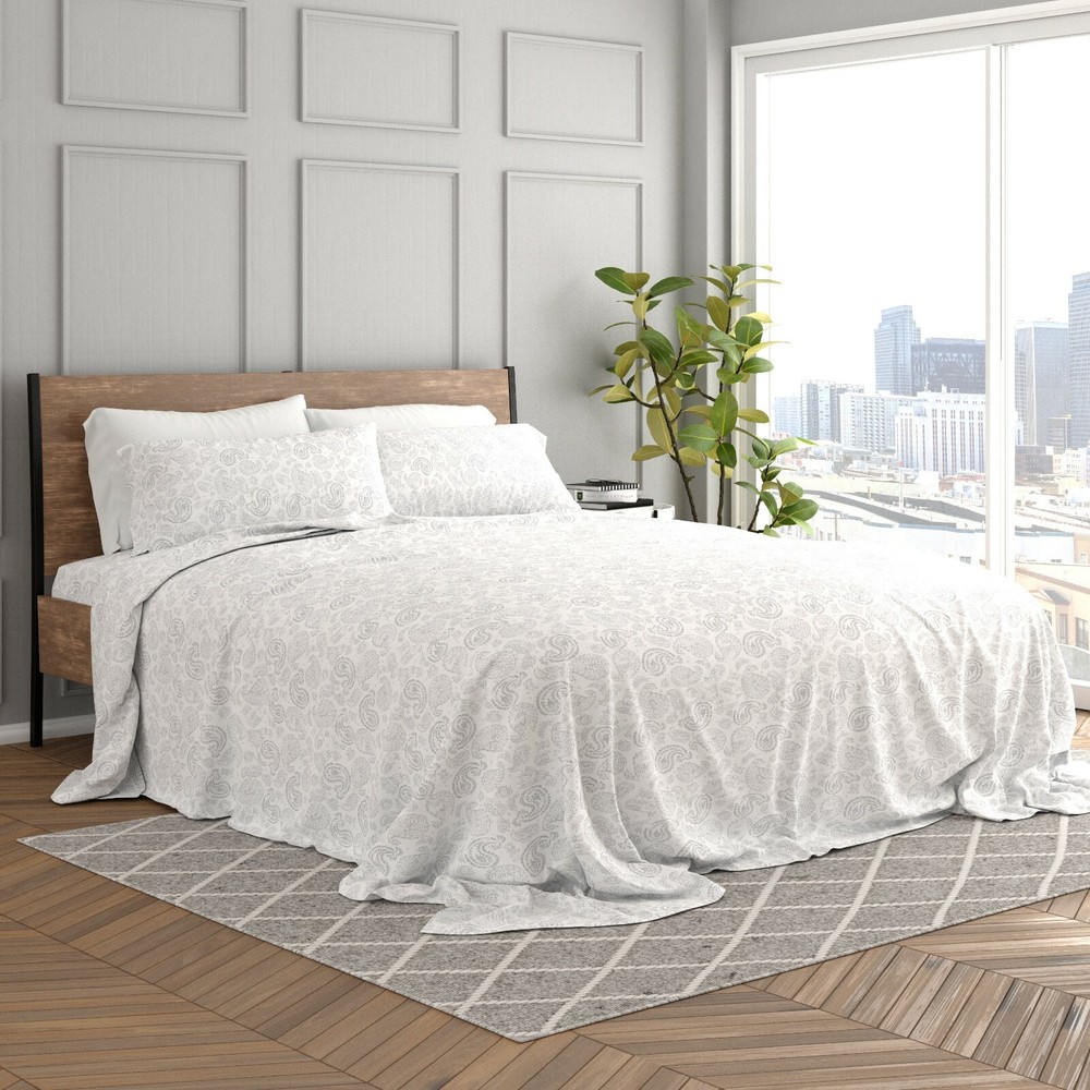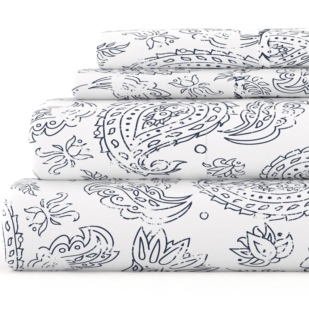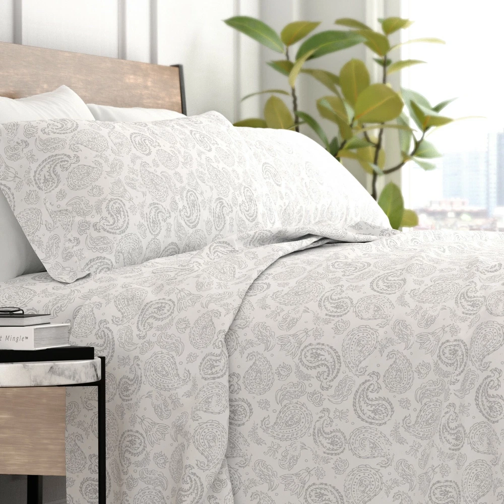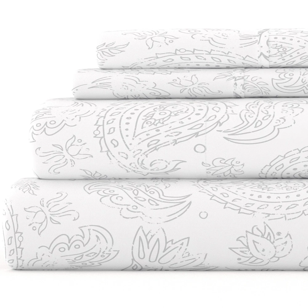 Kaycie Gray 4-Piece Soft Microfiber Paisley Bed Sheet Set