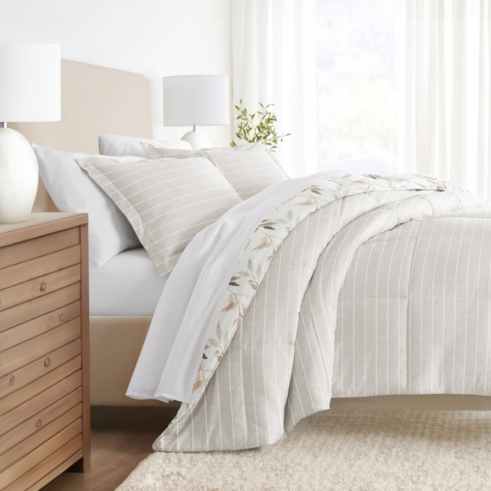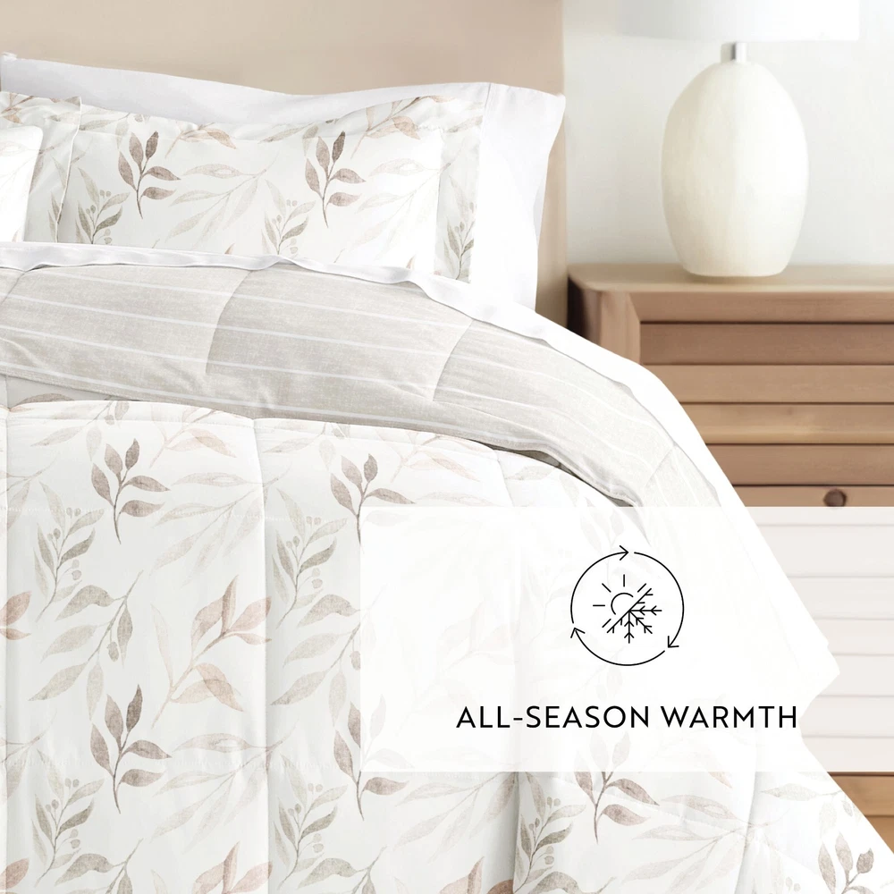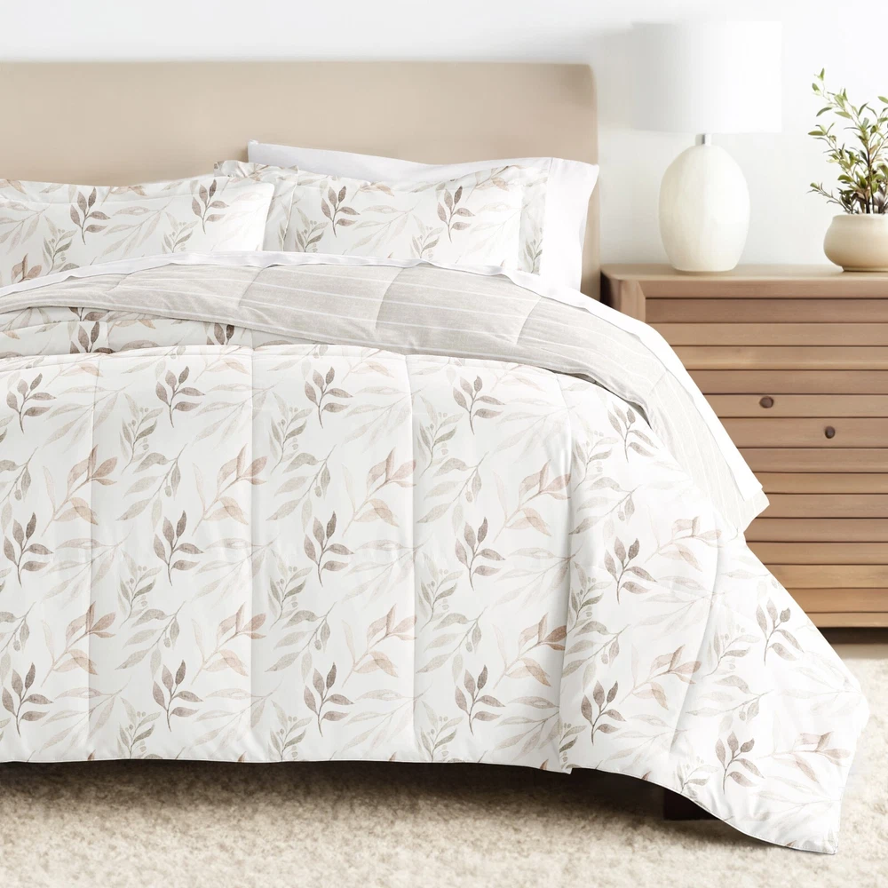 Kaycie Gray Floral Reversible Comforter Set for Stylish Bedding
