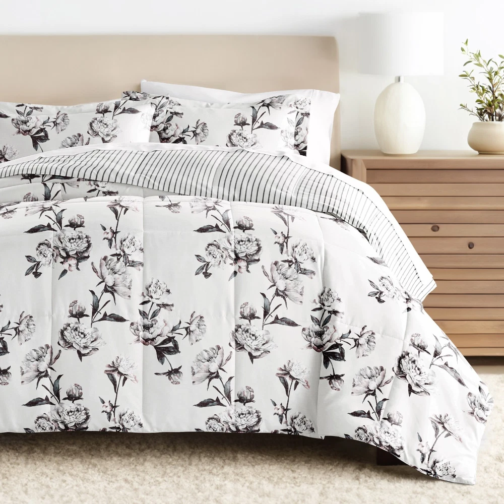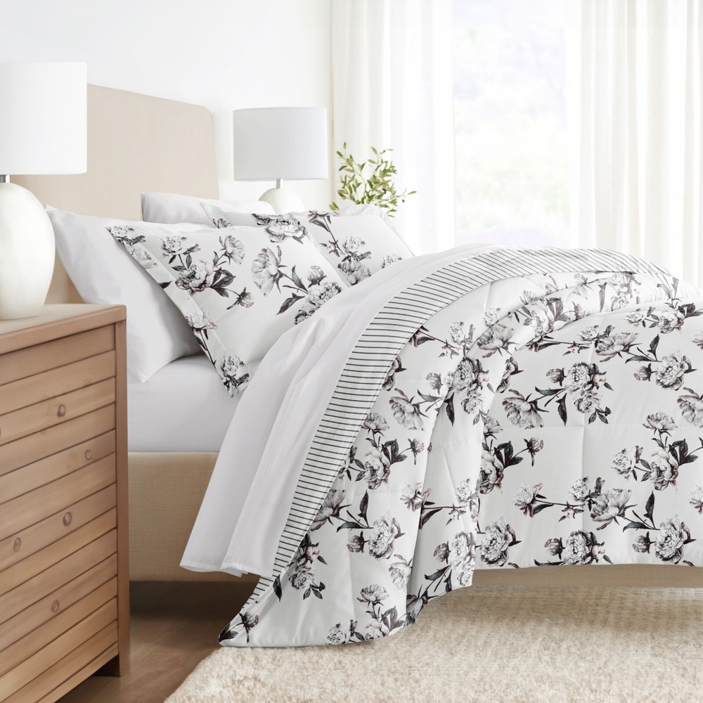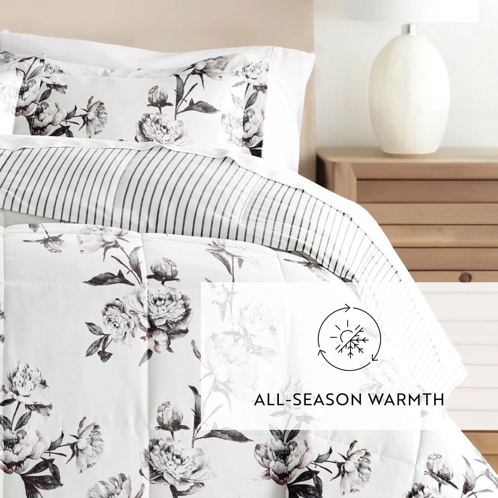 Kaycie Gray Floral Patterned Reversible Comforter Set