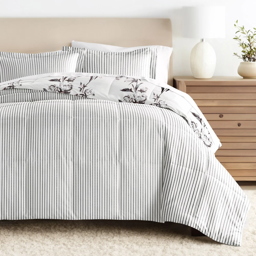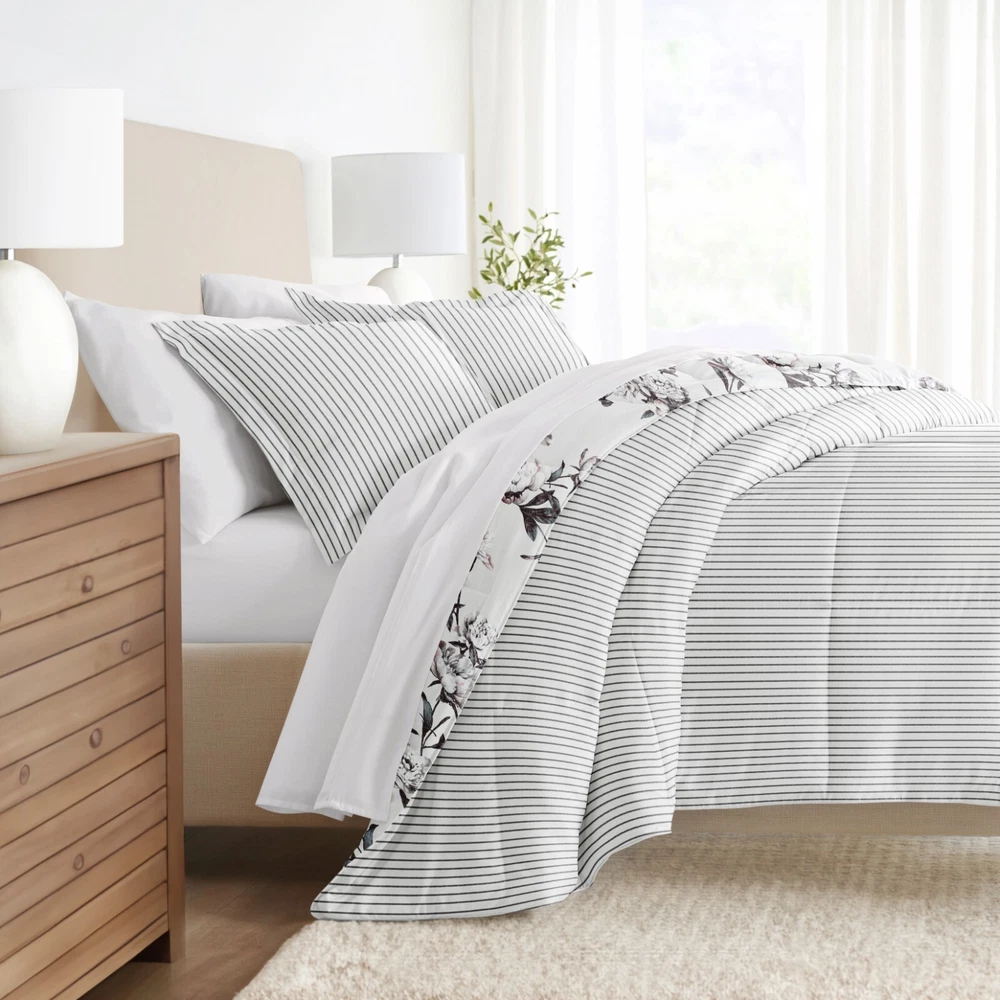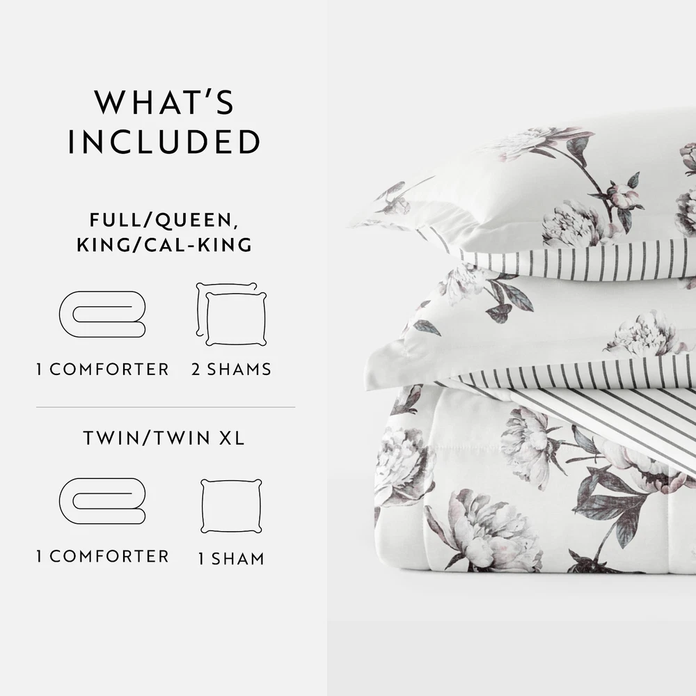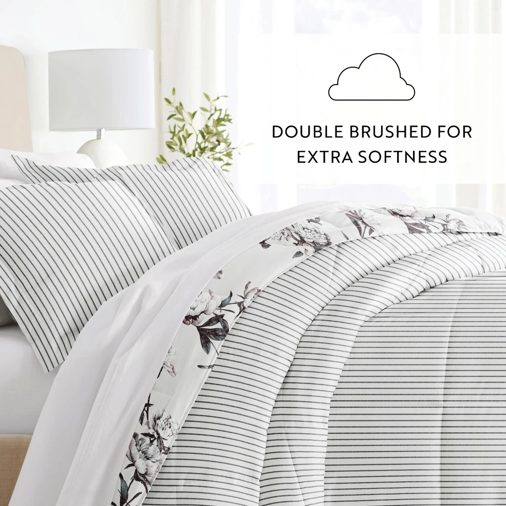 Kaycie Gray Floral Patterned Reversible Comforter Set