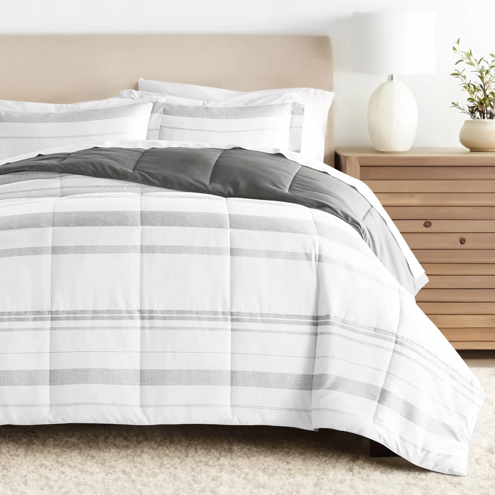 Kaycie Gray Reversible Striped Comforter for Stylish Comfort