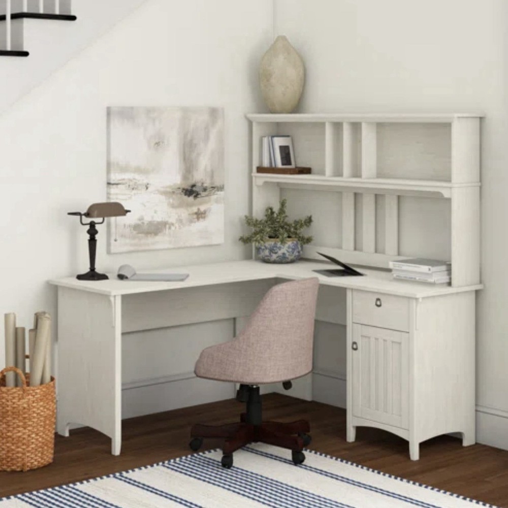 Combine functionality with a touch of modern elegance at your home office or study with the Khadesha L-Shaped Credenza Desk from Red Barrel Studio. Crafted for the contemporary workspace, this desk features a sleek brown finish that complements any decor. The spacious 62-inch height provides ample room for comfortable work positioning, while the 60-inch length and width offer a substantial surface for all your computing and storage needs. Designed for convenience, this free-standing desk requires no additional parts and is easy to assemble, allowing you to set up your workspace quickly. Whether you're tackling paperwork or navigating through your laptop, the Khadesha Credenza Desk is tailored to fit your lifestyle and enhance your productivity.