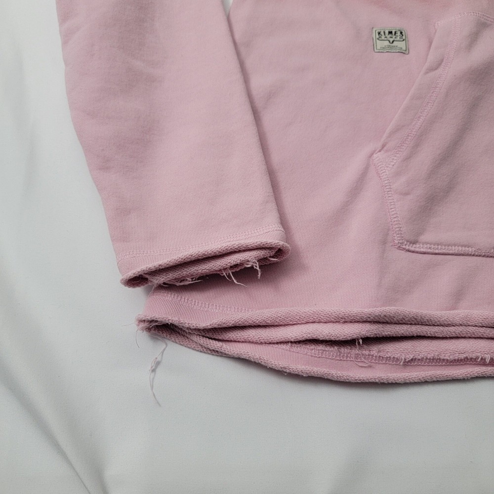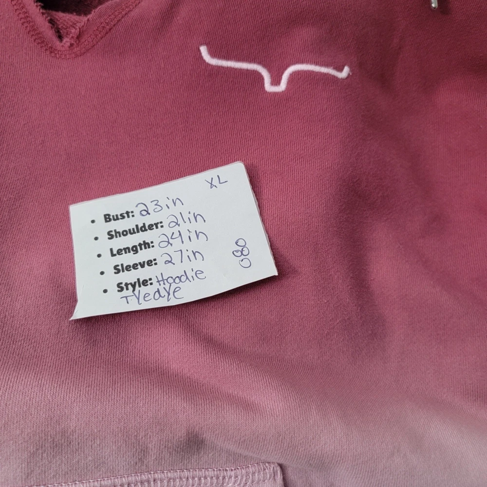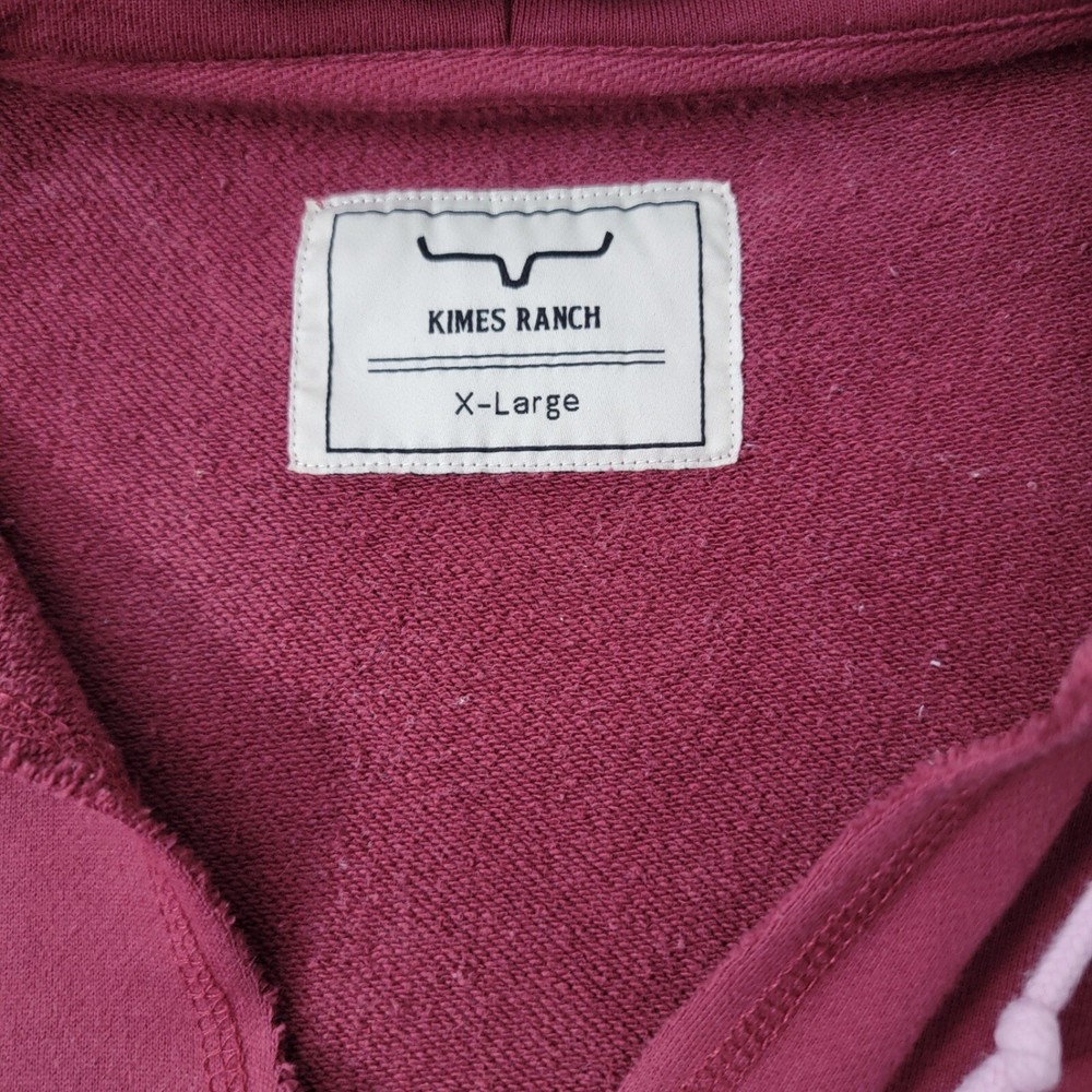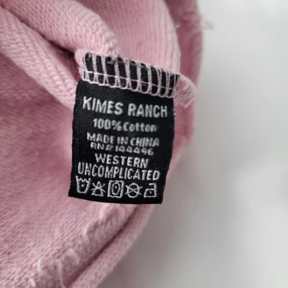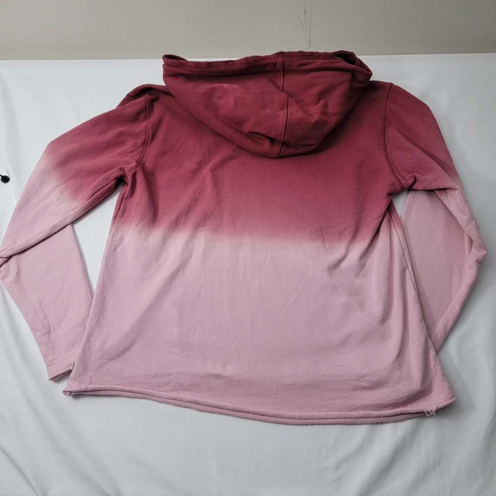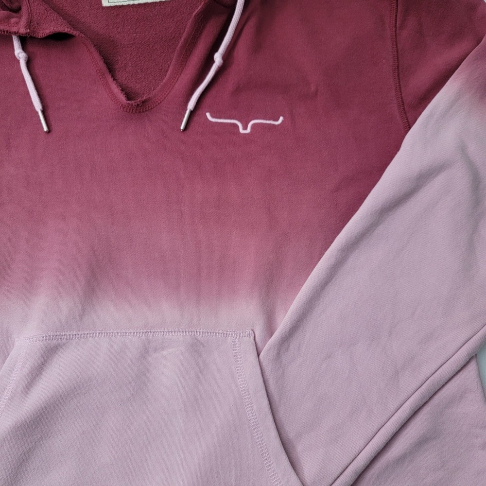Dip-dyed dreams materialize in this Kimes Ranch hoodie, a captivating blend of comfort and style. The ombre effect transitions seamlessly from a rich, deep red to a soft, delicate pink, creating a visually stunning piece. A raw hem adds a touch of edgy flair, while the cropped length keeps it modern and on-trend. The classic hoodie design features a cozy hood and a convenient kangaroo pocket, perfect for keeping your hands warm or stashing small essentials. Has one small stain see photo Style: Pullover Color: Red Department: Women Type: Hoodie Closure: Pullover Character: Western, Ranch, Ombre, Dip Dye, Raw Hem Features: Hooded, Pockets, Lightweight, Oversized, Raw Hem Fabric Type: Knit Material: Cotton Blend Pattern: Solid Sleeve Length: Long Sleeve Neckline: Round Neck