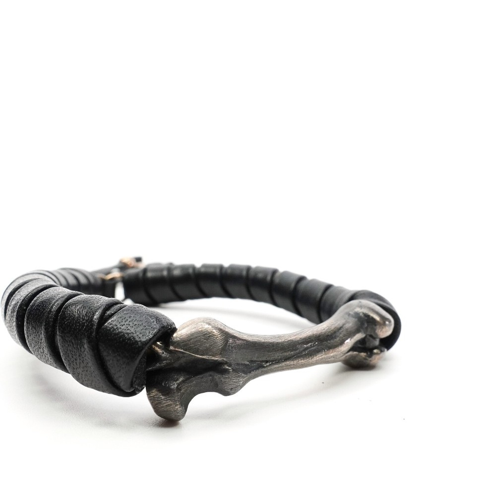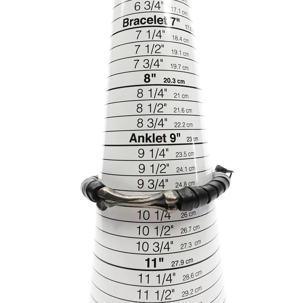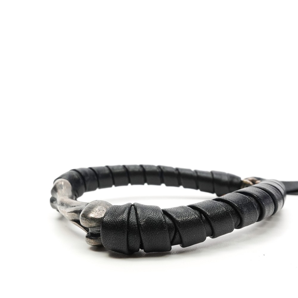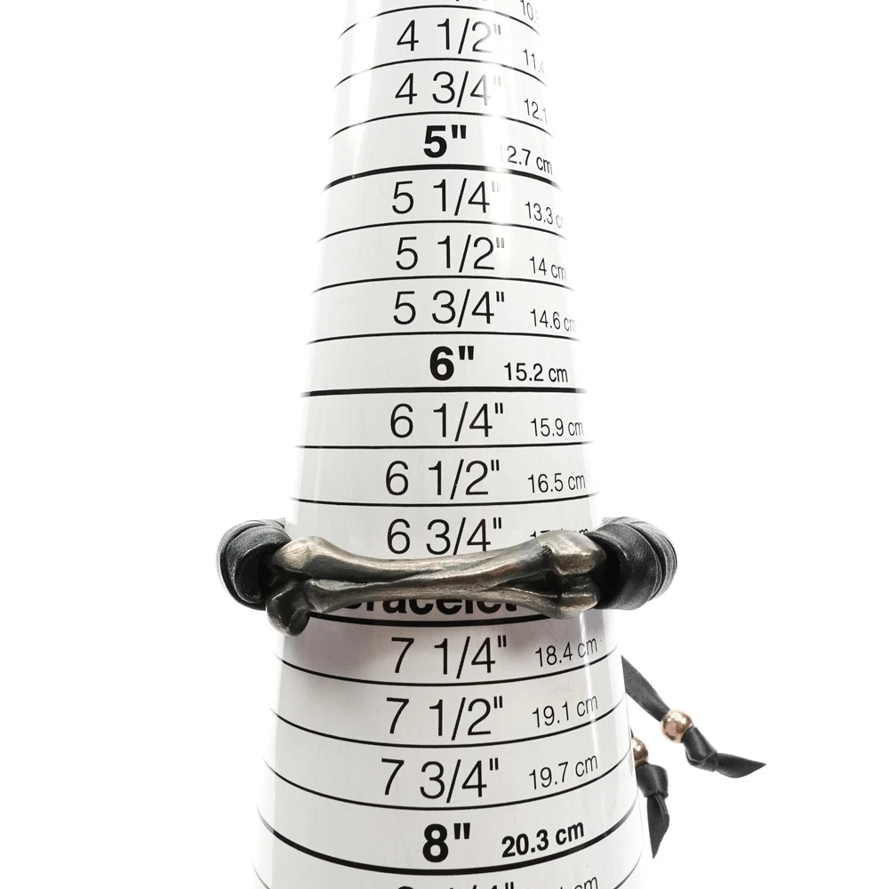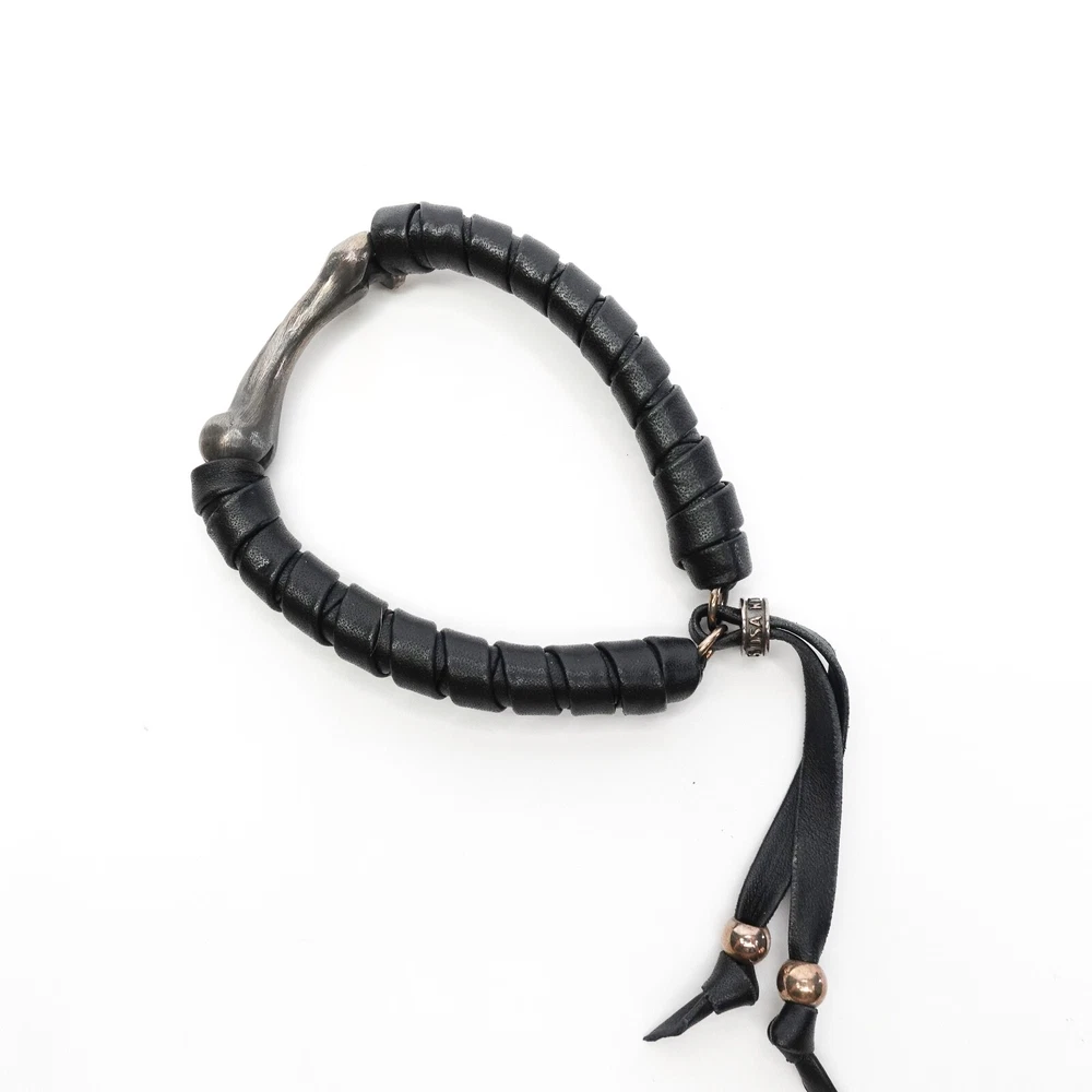 King Baby Studio Bone Shaped Bead Leather Wrapped Bracelet Silver .925 MSRP $390 Approximately Fits 6.75" - 10" as shown in photos Natural patina has been left on the silver - may vary slightly from photos as each piece is unique Item is new with store tags but with out jewelry bag/box ALL OF OUR PRODUCTS ARE 100% AUTHENTIC AND PURCHASED FROM VARIOUS AUTHORIZED RETAILERS. Free Shipping All items are typical shipped within 24 hour of purchase (excluding weekends) to the shipping address on file. We will ship your item in either a box or in a poly bag. Double boxing is available upon request. Please request this in purchasing notes. Read our feedback and buy with confidence! Your feedback is very important to us. If you had a great experience please let us know by leaving us a review! If there was a problem with your order please contact us so that we can work to resolve the issue.