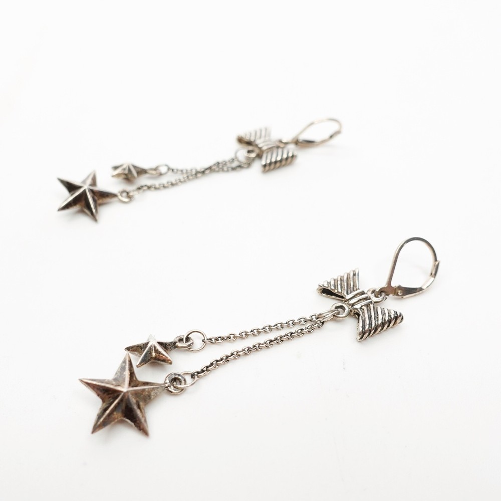King Baby Studio Lever Back Earrings With Bow Stars Drops Fine Silver .925 MSRP $235 Natural patina has been left on the silver Item is new with store tags but with out jewelry bag/box ALL OF OUR PRODUCTS ARE 100% AUTHENTIC AND PURCHASED FROM VARIOUS AUTHORIZED RETAILERS. Free Shipping All items are typical shipped within 24 hour of purchase (excluding weekends) to the shipping address on file. We will ship your item in either a box or in a poly bag. Double boxing is available upon request. Please request this in purchasing notes. Read our feedback and buy with confidence! Your feedback is very important to us. If you had a great experience please let us know by leaving us a review! If there was a problem with your order please contact us so that we can work to resolve the issue.