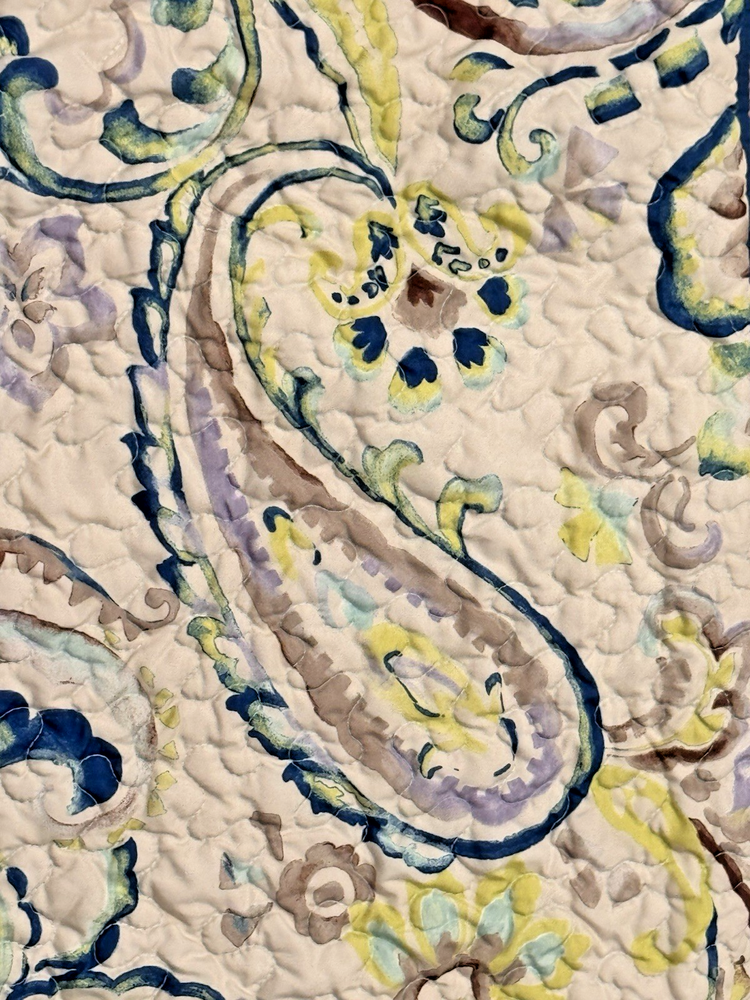 King Size Madison Park Paisley Quilted Shams - Set of 2. The design is a beautiful, quilted paisley pattern in excellent condition. No stains, tears, or loose stitching. Unlike some polyester shams these are incredibly soft! Price is negotiable and always open to offers!