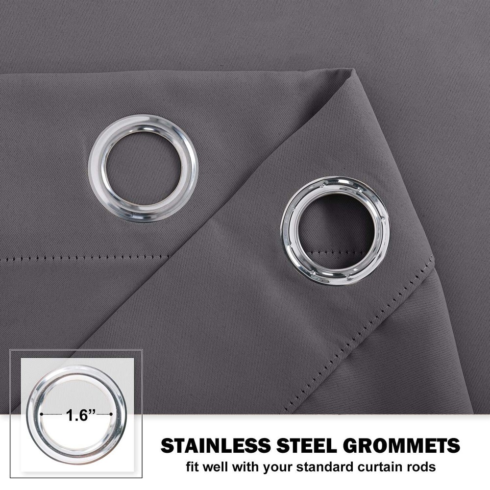 READY MADE: Package includes 2 curtain panels with 12 grommets (1.6-inch inner diameter), W42" x L36"+1.2" header each panel ( Curtain's whole length is 37.2" from top to bottom). MULTI-FUNCTION: Super heavy and soft Blackout Curtain Panels are very upmarket. Besides, 85%-99% light blocking, thermal insulated, soundproof, Fade-resistant, energy-efficient. Thread trimmed and wrinkle-free, both sides are the same color. WISE CHOICE: Protect your furniture and floors from sun exposure, while enhancing the energy efficiency of your home. Enjoy added privacy with our curtains, designed to ensure a restful night's sleep that leaves you energized each day. WIDE COMPATIBILITY: Don't bother looking for valance to match, choosing different styles of blackout valance with the same color in the store. Such curtain sets provide a more permanent harmonious window dressing. EASY MAINTENANCE: Machine or hand washable. Mild detergent no bleaching. Low-temperature ironing. Measure your pole and window size before you choosing curtains.