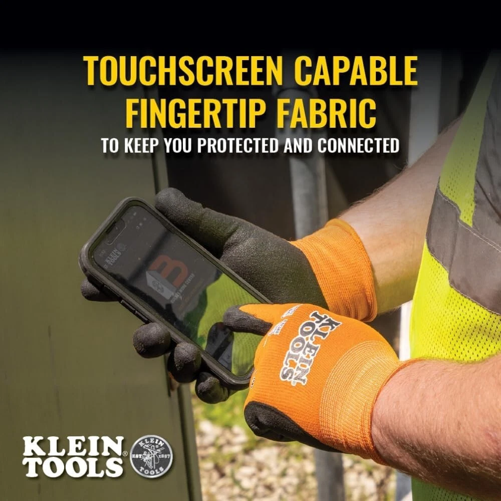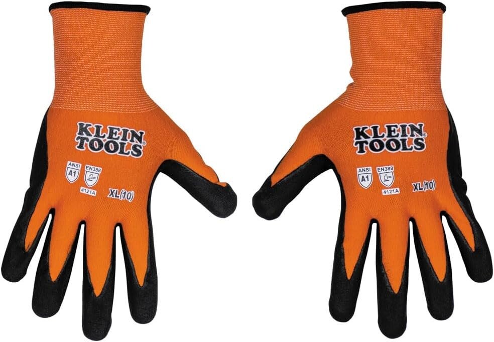 Klein Tools 60673 Work Gloves Knit Dipped Cut Resistant ANSI A1 Nitrile Coated X Klein Tools 60673 Work Gloves Knit Dipped Cut Resistant ANSI A1 Nitrile Coated X Product Description Introducing the Klein Tools 60673 Work Gloves, Knit Dipped Cut Resistant ANSI A1 Nitrile Coated Gloves, designed for the ultimate hand protection and high dexterity performance. This listing is for an X-Large size, featuring 1 pair of these top-rated gloves that are perfect for a wide range of tasks. Key Features: Cut Resistant: ANSI A1 rating ensures superior protection against cuts and abrasions. Nitrile Coated: Offers excellent grip and durability, making these gloves ideal for tough jobs. Nylon-Spandex Construction: Provides a snug yet comfortable fit, allowing for excellent dexterity. Touchscreen Capable: Stay connected while you work with the touchscreen compatible design. When it comes to quality and reliability, Klein Tools is a name you can trust. With over 160 years of experience in manufacturing professional-grade tools, Klein Tools ensures that every product meets the highest standards of performance and durability. Whether you're a professional tradesperson or a DIY enthusiast, these Klein Tools Work Gloves are designed to meet the demands of your daily tasks. The combination of cut resistance, nitrile coating, and touchscreen capability makes these gloves versatile and essential for a variety of applications. Stand out from the crowd with Klein Tools - a brand synonymous with innovation, quality, and excellence. Choose these knit-dipped gloves for superior hand protection without compromising on flexibility and comfort. Don't miss out on the opportunity to own a pair of these high-quality Klein Tools Work Gloves. Buy now to secure this great deal and experience the difference for yourself!