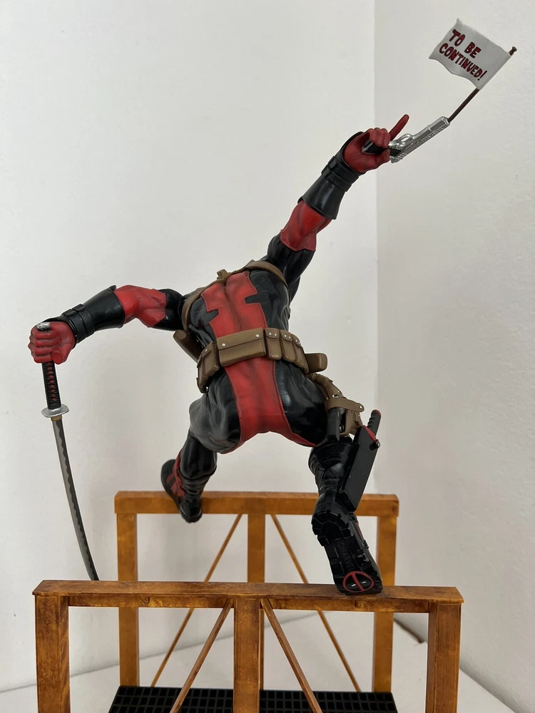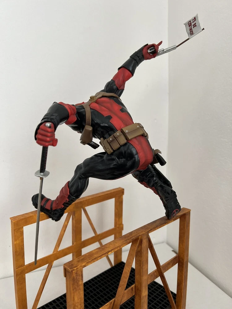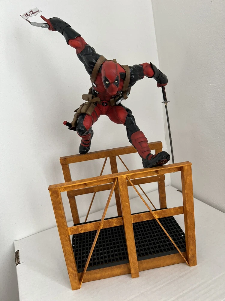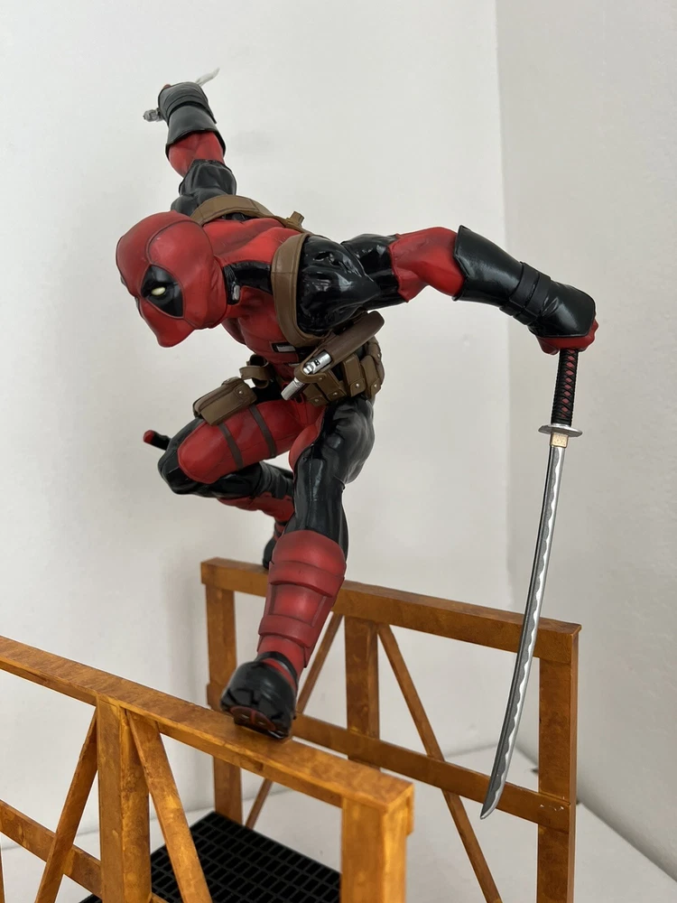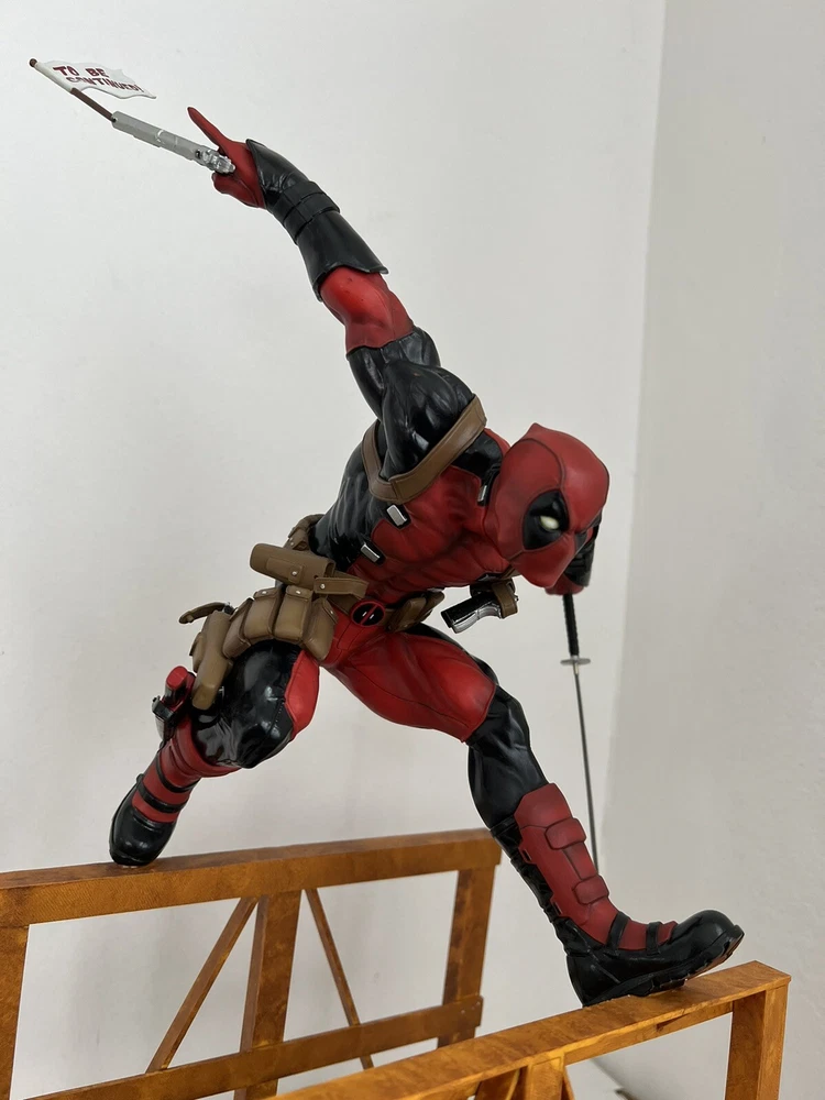 Hello selling Kotobukiya Marvel Now Deadpool/Wolverine: Deadpool ArtFX Statue Figure 16in tall. In pretty good condition but please zoom in pictures to distinguish condition yourself. Not sure if anything is missing, what you see in pictures is what you’ll be receiving. Comes without original box. Shipping from san francisco, CA but local pickups welcomed.