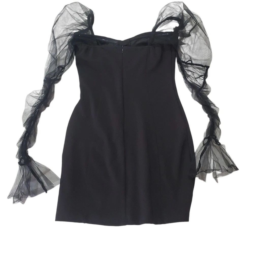 L Vow Studio Womens Black Mesh-Long-Sleeve Mini Dress Goth Whimsicore Sz S Great little black dress. Perfect for cocktail parties or any dress up occasion. Measurements laying flat: Pit to Pit 15" Waist 12.5" Hips 15" Length 23" Excellent preowned condition. No defects, flaws, or stains. Looks new. Clean! Fast shipping. Thanks for looking!