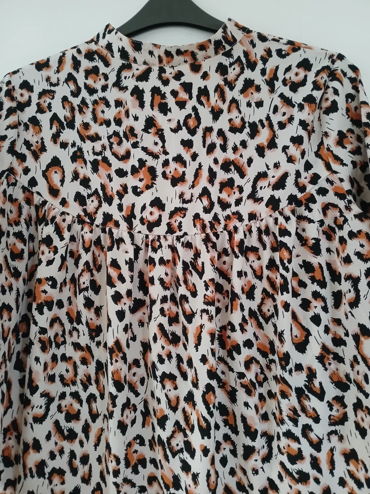 This leopard print top is stylish and fun—perfect for adding a bold touch to any outfit! The dip hem gives it a trendy, flattering fit, and the material feels great. Love the unique design, and the sizing is spot on. Super fast shipping and secure packaging too! Definitely recommend checking out the seller’s other items.