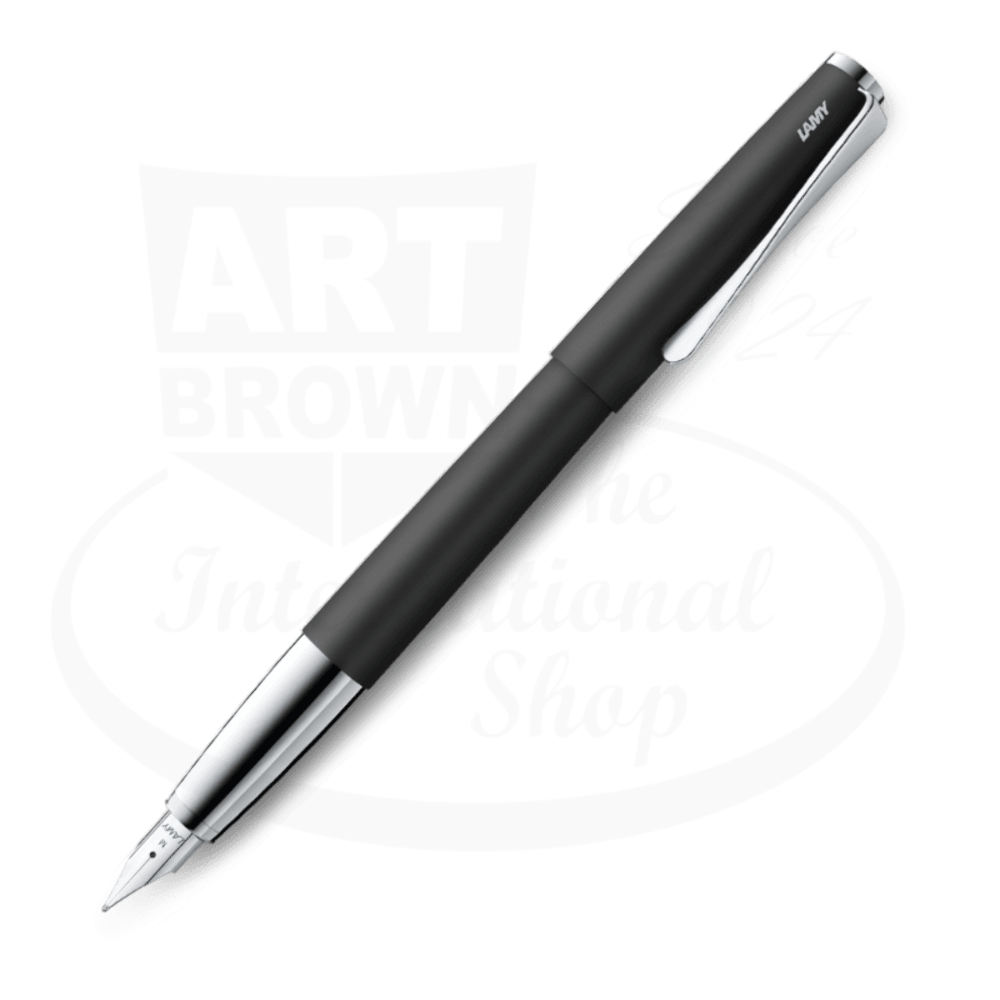 LAMY Studio Black Fine Fountain Pen, L67F The LAMY studio elegantly shows just how close design and art can be. This premium writing instrument seamlessly fuses its individual elements with its convex cylindrical form while simultaneously foregoing all unnecessary embellishments. The propeller-shaped, seemingly twisted clip counters the objective elegance of the LAMY studio with an innovative design accent. The special elegance of the LAMY studio demonstrates just how close design and art can be. The propeller-shaped clip accents the pen’s innovative form. Matt black lacquer finish with steel propeller-shaped clip, polished steel nib, with LAMY T 10 blue ink cartridge; suitable for converter LAMY Z 27. LAMY Studio Black Fine Fountain Pen, L67F The LAMY studio elegantly shows just how close design and art can be. This premium writing instrument seamlessly fuses its individual elements with its convex cylindrical form while simultaneously foregoing all unnecessary embellishments. The propeller-shaped, seemingly twisted clip counters the objective elegance of the LAMY studio with an innovative design accent. The special elegance of the LAMY studio demonstrates just how close design and art can be. The propeller-shaped clip accents the pen’s innovative form. Matt black lacquer finish with steel propeller-shaped clip, polished steel nib, with LAMY T 10 blue ink cartridge; suitable for converter LAMY Z 27. × Buy now and save! Tell a friend Visit store Watch now