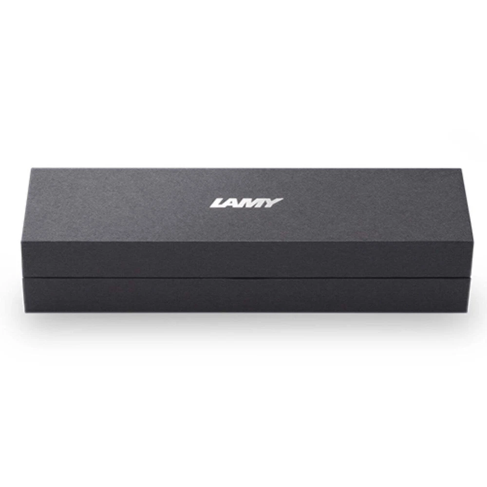 Timeless perfection. The LAMY studio convinces with timeless elegance and a universal design. The bulgy cylindrical shape of its all-metal body results seamlessly from the individual housing parts and is deliberately kept minimalist. The gentle curvature and harmonious proportions make the clip the trademark of the LAMY studio: it contrasts the matter-of-fact basic shape with an innovative design accent and creates a unique overall appearance. The LAMY studio is assembled by hand at the LAMY craftsman's workshop in Heidelberg. In regularly released special editions, it reinvents itself again and again and thus should not be missing on any desk - whether as a premium writing instrument suitable for everyday use or as a collector's item. Rollerball pen / matt black lacquer finish / steel propeller-shaped clip / with refill LAMY M 63 M black