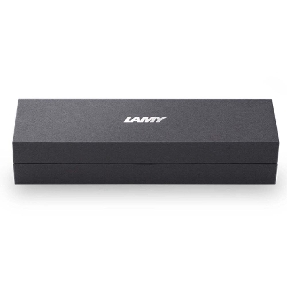 Timeless perfection. The LAMY studio convinces with timeless elegance and a universal design. The bulgy cylindrical shape of its all-metal body results seamlessly from the individual housing parts and is deliberately kept minimalist. The gentle curvature and harmonious proportions make the clip the trademark of the LAMY studio: it contrasts the matter-of-fact basic shape with an innovative design accent and creates a unique overall appearance. The LAMY studio is assembled by hand at the LAMY craftsman's workshop in Heidelberg. In regularly released special editions, it reinvents itself again and again and thus should not be missing on any desk - whether as a premium writing instrument suitable for everyday use or as a collector's item. Ballpoint pen / twist-action mechanism / palladium finish / steel propeller-shaped clip / with giant refill LAMY M 16 M black