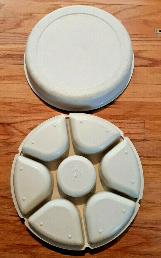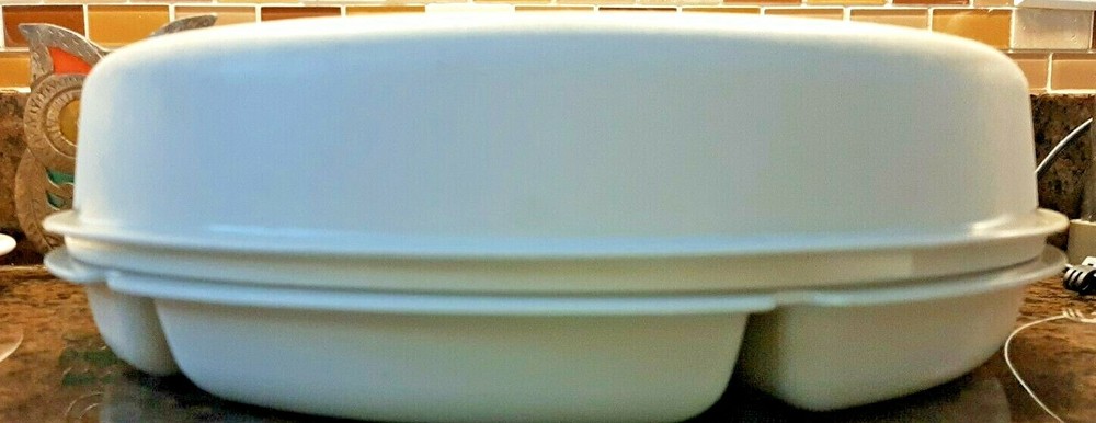 LARGE TUPPERWARE ALMOND 1665 VEGGIE FRUIT SNACKS DIP CHIP TACOS SERVER + LID 2-PIECE. Measures 14" Diameter. 2.5" Deep. Free of chips, cracks, crazing and/or repairs. Excellent pre-owned condition! This item has been previously loved. Reusing it promotes a more sustainable lifestyle. Please view all images in this listing as they are also part of the description. I do my best to describe all items as accurately as possible to ensure customer satisfaction. Reasonable “Best Offers” are encouraged and welcome. My goal is to find happy homes for each of my items. Don’t forget to save me as a favorite seller so you can easily find me under the “My eBay” area. If you are a repeat customer, be sure to let me know! Shipping cost varies based on buyers’ location. If you have any questions, feel free to reach out and I will respond as quickly as possible. If you purchase more than one item, I will gladly combine shipping when possible. Please request an adjusted invoice before making payment when purchasing multiple items to ensure correct charges. Thank you for browsing and have a wicked cool day! Please Note: All information is subject to change including but not limited to artwork, design, release dates, edition, and sizes. Colors and shades will vary and may not be an exact match as to what is pictured online. Taxes, shipping, and other applicable fees are not included in price.
