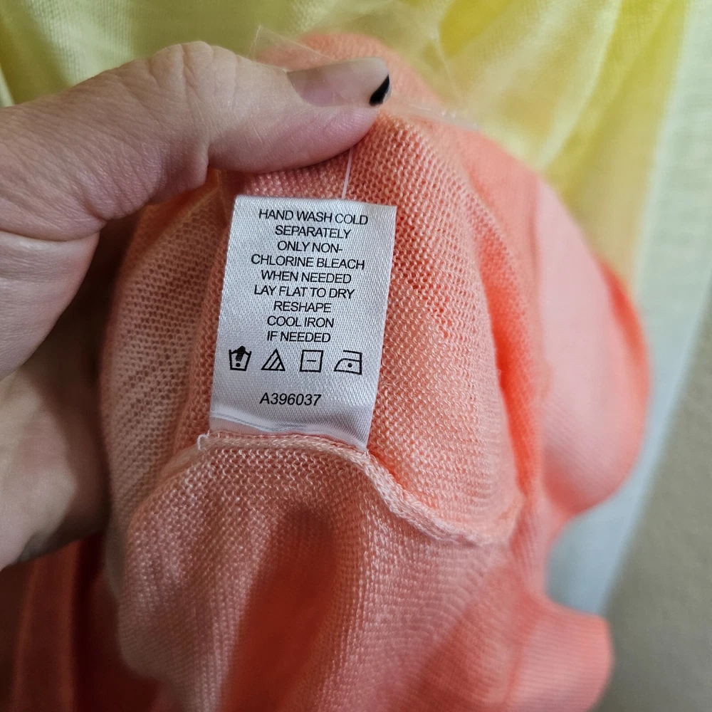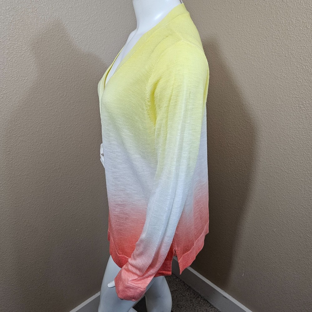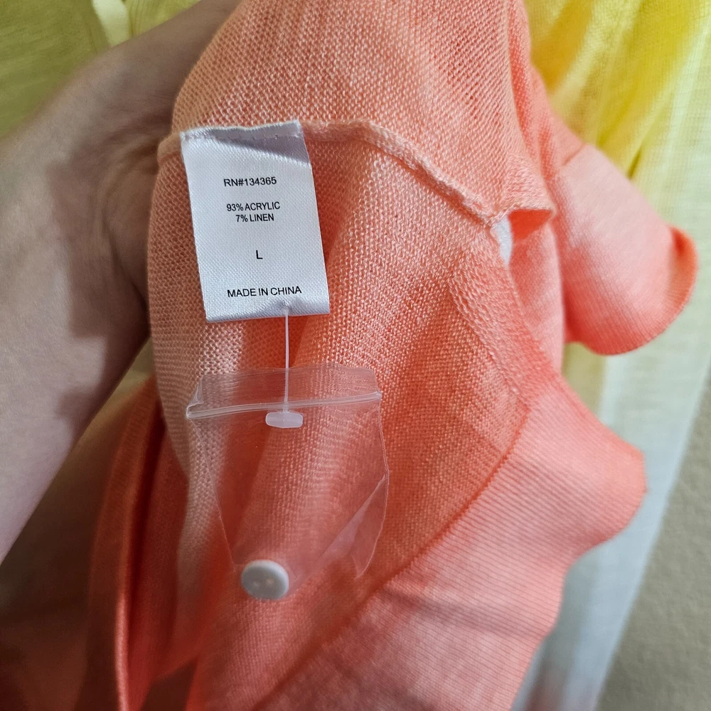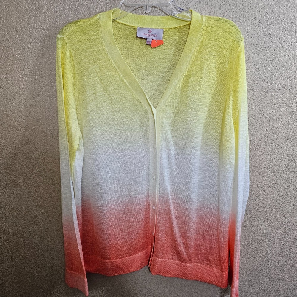 LAURIE FELT Sunset Dip Dye Linen Blend Button Down Cardigan~Size L PLEASE READ ALL THE INFO ABOUT THIS ITEM:) "The only rule is don't be boring and dress cute wherever you go. Life is too short to blend in" Thank you so much for stopping by and checking out my store. Today you are looking at LAURIE FELT Sunset Dip Dye Linen Blend Button Down Cardigan~Size L COLOR : Multicolor ***Please note that color might differ from picture as flash light was used. Also it depends on your monitor light settings*** Size: Tag size reads L but please see pictures for all measurements ***Check measurements as even for the same size different brands measurements might differ, o please purchase by measurements not the size tag*** Measurements: PLEASE SEE PICTURE FOR ALL LAY FLAT MEASUREMENTS Condition : excellent pre-owned with no flaws found. extra button still attached NWT~ New with tags, never washed or worn; no flaws NWOT~ New without tags, never washed or worn; no flaws LIKE NEW ~ Appears new, no signs of wear; washed and possibly worn; no flaws EXCELLENT~ Previously worn, with only very slight wash wear; no flaws VERY GOOD~ Previously worn with moderate wash wear/fade, but no visible flaws Fabric&Car e : see tag pictured for material and care instructions Style : *see many pictur es for all details and contact me with any questions Item number: BOTR N2 RETURN POLICY NO RETURNS because of the fit ( all measurements provided), because you do not like the item in person ( all pictures provided, what you see that?s what you get), or because the color looks different ( as many pics provided and color is described to my best ability, it might look different because of the different monitor settings). So NO RETURNS BECAUSE OF FIT , COLOR ISSUES OR SIMPLY YOU JUST DON'T LIKE IT ANYMORE. RETURNS WILL BE ACCEPTED ONLY IF I MADE MISTAKE IN THE LISTING OR GROSSLY MISREPRESENTED THE ITEM. PLEASE FOLLOW THESE RULES: *CONTACT MADE WITHIN 24 HOURS STATING MISREPRESENTATION OF ITEMS *RETURN HAS TO BE RECEIVED WITHIN 7 DAYS WITH ALL TAGS ATTACHED ( IF APPLICABLE) AND IN ORIGINAL RECEIVED CONDITION /PACKAGING. DO NOT MISS A BARGAIN. CHECK OUT OTHER AUCTIONS AND GET EVEN BETTER BARGAINS:) !!!SMOKE FREE, BUT PET FRIENDLY HOME!!! (HOVEWER MERCHANDISE COMES FROM MANY DIFFERENT SOURCES, SO I CAN NOT GUARANTEE THAT IT WAS NOT EXPOSED TO SMOKE OR PETS BEFORE I RECIEVED IT, BUT IT HAS NO VISIBLE OR SMELLABLE SIGNS OF THAT Ask all and any questions to insure your satisfaction. THANKS FOR STOPPING BY Happy e-baying. TERMS OF SALE Please purchase with care and read all the description carefully. No returns. ALL SALES FINAL. Returns will not be granted unless the items were misrepresented in the description. NO RETURNS because of the fit ( all measurements provided), because you do not like the item in person ( all pictures provided, what you see that?s what you get), or because the color looks different ( as many pics provided and color is described to my best ability, it might look different because of the different monitor settings). So NO RETURNS BECAUSE OF FIT , COLOR ISSUES OR SIMPLY YOU JUST DON'T LIKE IT ANYMORE. PAYMENTS!!!!!! Payment is due within immediately. PAYPAL ONLY. SHIPPING!!!! You can receive FREE SHIPPING if you purchase $100 or more in merchandise (excluding clothing lots which have more then 10 items in that lot itself) and 2 or more listings ( it has to be both: 2 listings and $100 plus $). This offer applies to U.S. shipping only, NO FREE INTERNATIONAL SHIPPING. Please e-mail me for a quote if you want multiple items shipped internationally, as it depends on actual weight ( international combined can be shipped priority mail ONLY) Items shipped within 1 day of cleared payment. Ships everyday except weekends and holidays-those days belongs to my family:) I DO COMBINE SHIPPING for items bought same day. You will pay the most expensive shipping price first then $2 per additional item or outfit ( US ONLY). International friends e-mail me for shipping quotes. To take advantage of combined shipping you must pay for all the items at the same time. Seller is not responsible of any customs or duties to buyer?s country. DUTIES AND IMPORT TAXES ARE BUYERS RESPONSIBILITY. I do ship to Hawaii, Alaska and APO addresses at no extra charge. You will pay exact what post office or UPS does charge. Track Page Views With Auctiva's FREE Counter