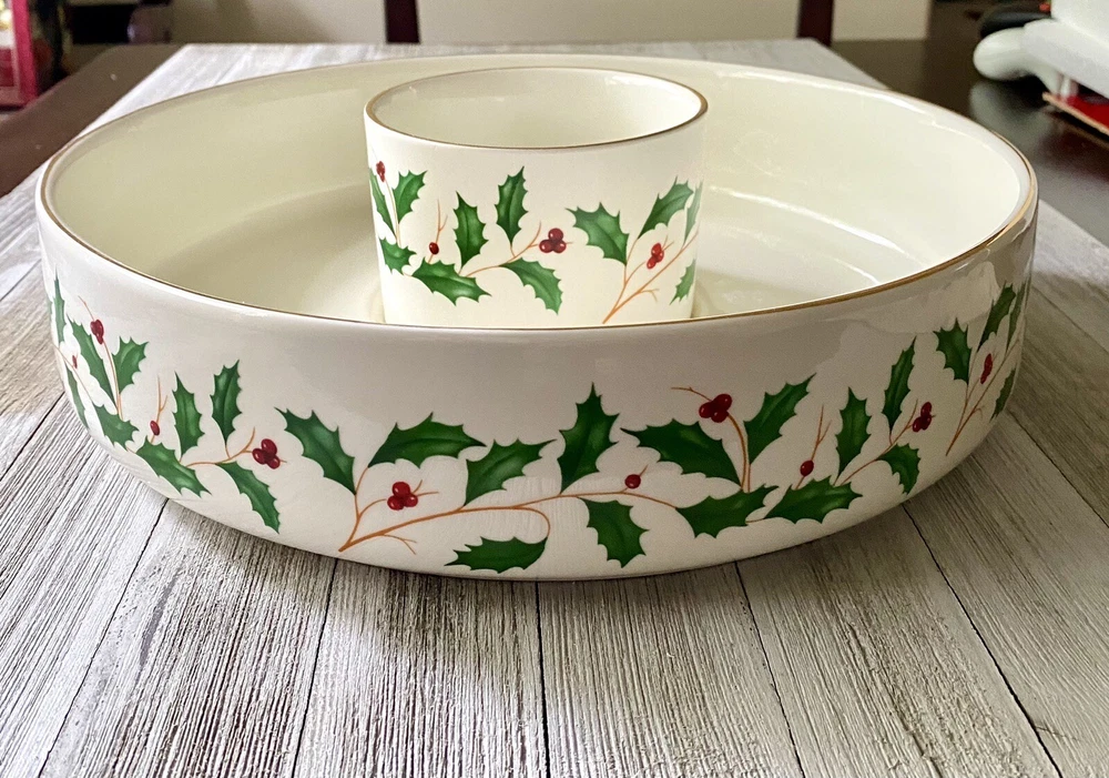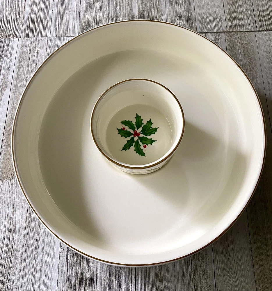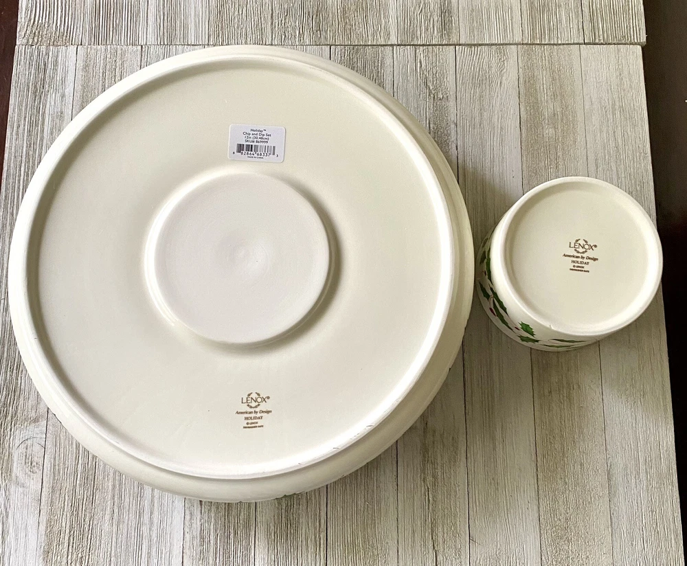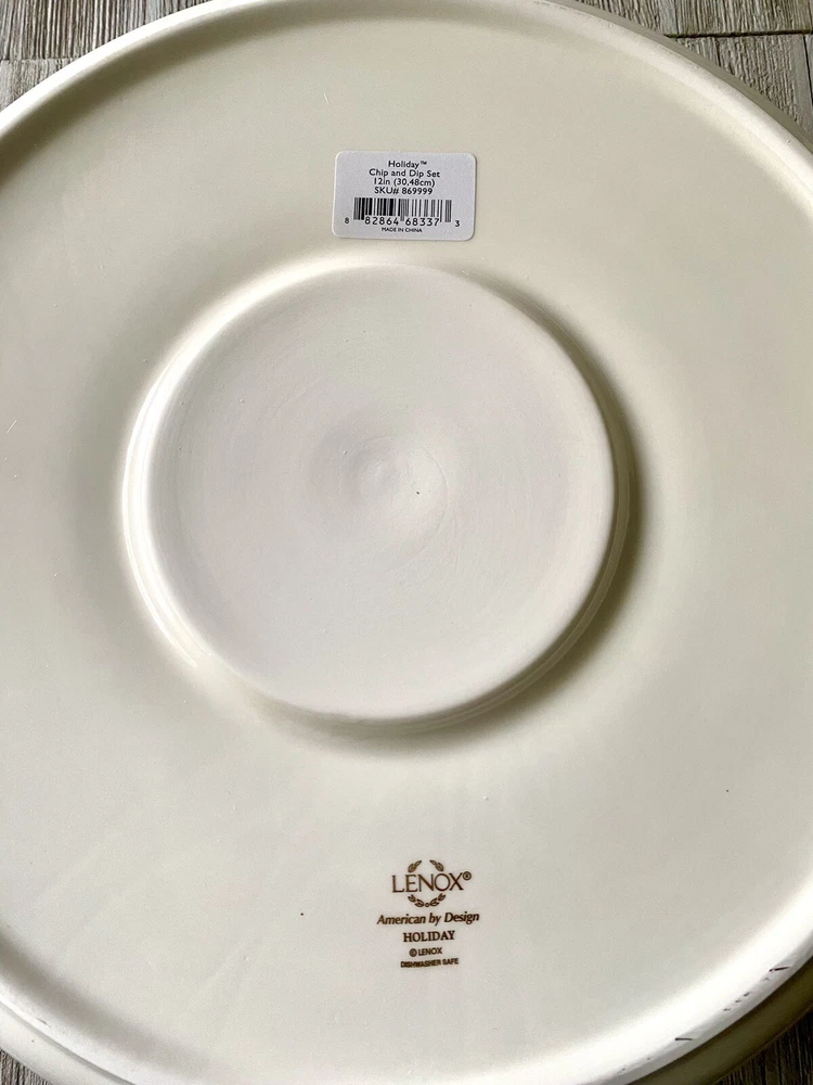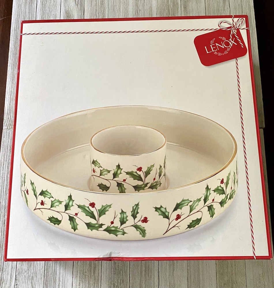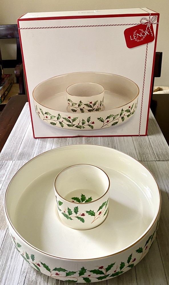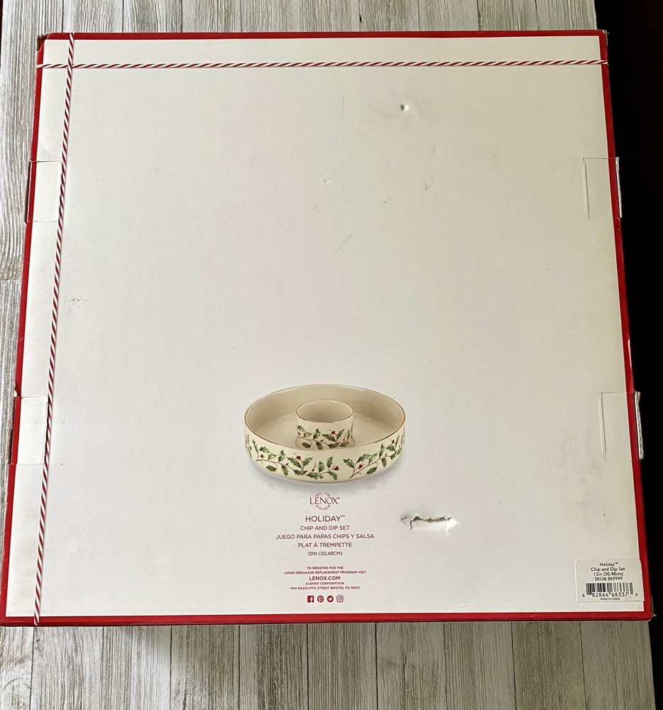 LENOX Extra Large Holiday Chip & Dip Set Platter 12.5" x 3" Deep New Opened Box This set is new in an opened box and is in mint condition, never used. See pictures for a detailed look as they are part of the description. Checkout our feedback Packaged with care Fast Shipping