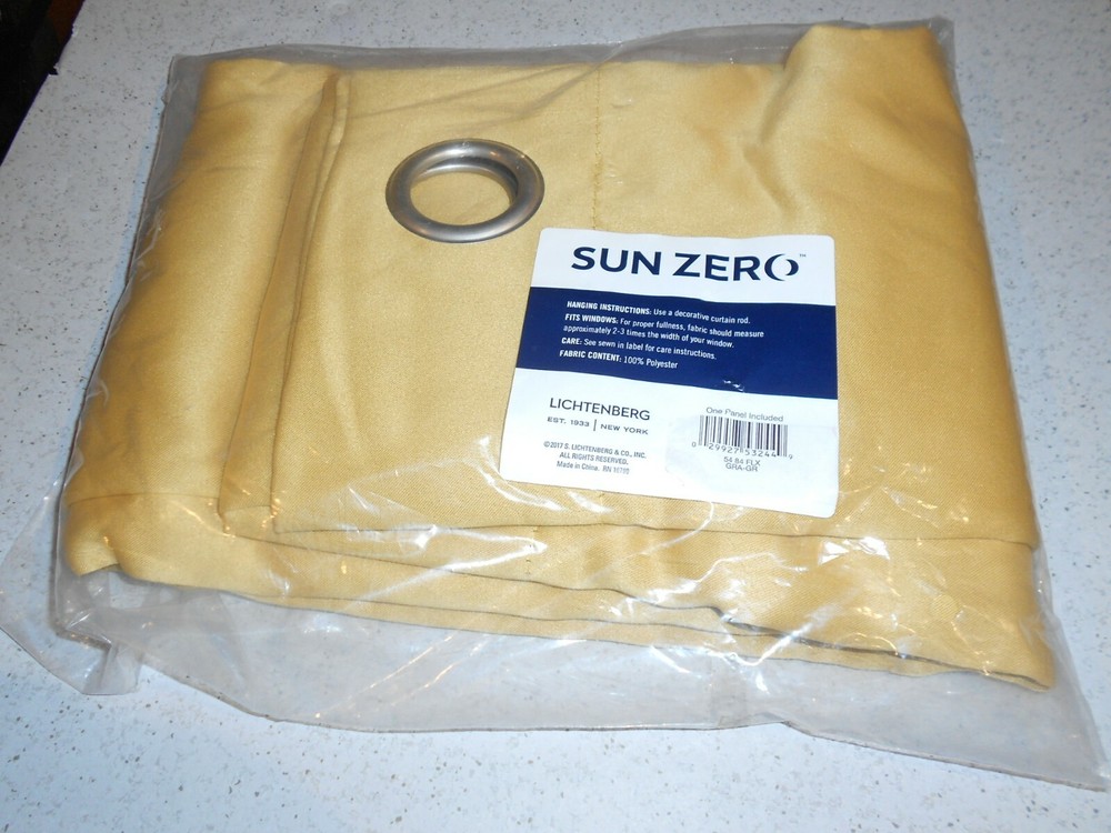 This auction is for a : SUN ZERO Barrow Energy Efficient Grommet CURTAIN PANEL Flax Yellow 54" x 84" Description: New item, never used, still in its factory packaging. Packaging shows a bit of distress, but item is still intact. Photos show actual item offered for sale. Comes from a smoke-free home! · Brand: LICHTENBERG · Collection: Sun Zero · Product Name: Barrow Energy Efficient Grommet · Product Color: Flax Yellow · Product Code: 54 84 FLX · Dimensions: 54” x 84” · Package contains: 1 panel · Fabric: 100% Polyester · UPC: 029927532449 · Condition: New Hanging Instructions: Use a decorative curtain rod. Fits Windows: For proper fullness, fabric should measure approximately 2-3 times the width of your window. Included: One Panel · · Room darkening technology significantly darkens the room, ideal for limiting unwanted light (amount of light blocked varies by curtain color) · · Energy efficient design reduces energy lost through your windows by up to 20-Percent · · Thermal properties help keep summer heat and winter chill out of your home · · Noise reduction by up to 25-Percent helps you get a sounder, more uninterrupted sleep · · Grommet top design allows for easy hanging with a standard curtain rod International Buyers - Please Note: · Import duties, taxes and charges are not included in the item price or shipping charges. These charges are the buyer's responsibility. · Please check with your country's customs office to determine what these additional costs will be prior to bidding/buying. Payment: Contact must be made within 1 day, and payment must be received within 3 days, or item will be relisted and non-paying buyer reported to eBay. I gladly accept: PayPal cash on pickup Please plan your payment accordingly, before bidding! Shipping: Item will be shipped through Canada Post the next business day upon payment is received. Shipping options and prices to Canada and USA are shown in shipping details section. Shipping to Canada: Most items in Canada are normally sent as Expedited parcel, or regular mail. Shipping can be upgraded to Xpresspost which include insurance up to CDN$100 (additional insurance can be purchased) and web tracking. Shipping to USA: Items under 1 kg (after packaging) will be sent as Small Packet Air (Optionally, shipping can be upgraded to Expedited or Xpresspost). Items over 1Kg (after packaging) will be sent as Tracked or Expedited Parcel, which offers web tracking, insurance up to CDN$100 (additional insurance can be purchased) and takes about 7 business days. Optionally, all items can be upgraded to Xpresspost (about 5 days, CDN$100 insurance, tracking) International shipping: All parcels are priced by the weight and destination. Please check Canada Post web-site or contact me prior the sale to check actual shipping cost. By purchasing the item, you agree with Canada Post pricing model. Shipping options and prices are different for each country. Depends on many factors. Please inquire before you make the purchase. Rates for most items will be calculated upon the termination of the sale, based on the destination country. Upon the auction end, I will send you the invoice with all available shipping options with prices. Insurance and tracking number are optional (with additional cost for the buyer), and if not chosen, buyer carries all responsibility for the lost/damaged shipment! Local pickup is welcome and FREE, but cash is the only payment option in case of pickup. Will ship worldwide. PLEASE NOTE - RETURN! All items are sold "AS IS" and sales are final. I will describe each item to the best of my ability and state any malfunction or discrepancies of which I am aware. Please ask questions if you have any, before placing your bid. Returns are accepted only if item is misspresented. Buyer must contact seller before the return, for authorization. Feedback: Check my perfect feedback .... bid with confidence! When the transaction is complete, I'll leave positive feedback, and would appreciate the same in return. Make sure to visit my eBay store for more interesting items!