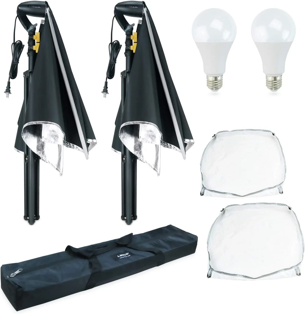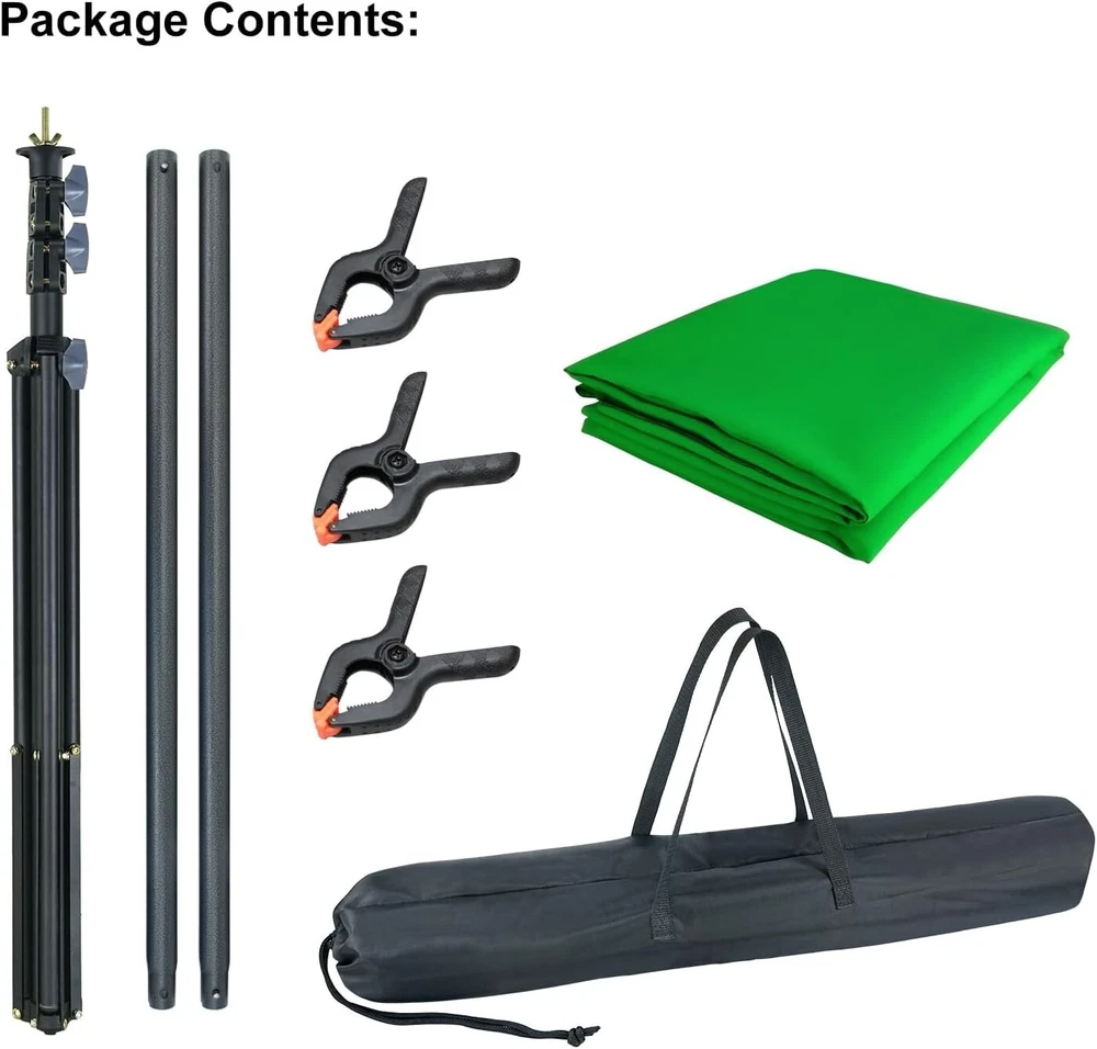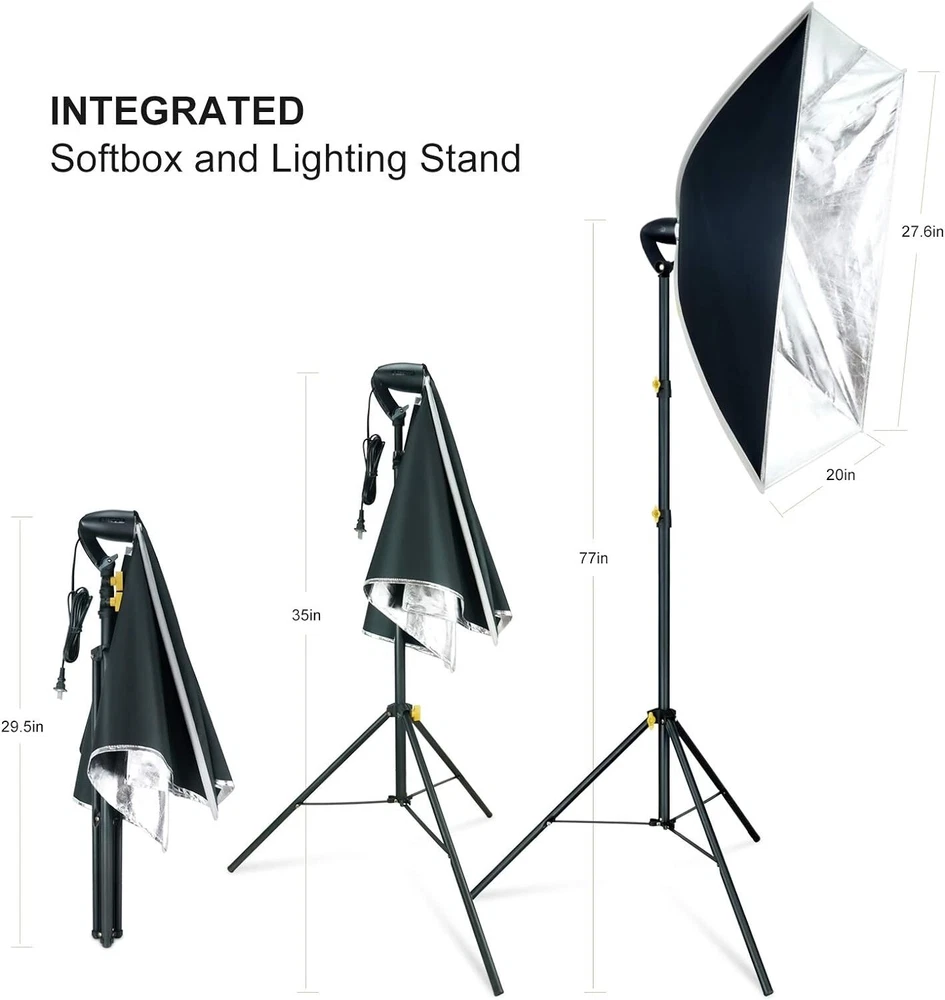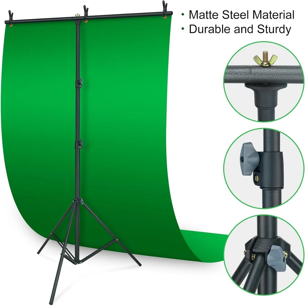 LINCO 5x6.7ft Portable T-Shaped Backdrop Stand Kit- With Green Screen This T-shaped green screen backdrop stand kit doesn't take up much space, you can use them for photography when studio space is limited, or pack them into a travel bag for easy portability. Easy to install and set up in minutes. or easy to disassemble and collect all the accessories and can be taken outside conveniently. Made of high quality matte steel material for durable and sturdy, and this support stand has an adjustable height telescopic mechanism. Green screen backdrop made of high density and opaque polyester fabric, less wrinkle and easier to restore than cotton material. If you find wrinkles, you can iron the green cloth to make the wrinkles disappear. Stains on the green screen background can be easily cleaned by dry cleaning or machine washing. Suitable for photo studio, product photography, wedding/party decoration, live streaming, etc. Washable and Ironable Green Screen Backdrop This green screen backdrop made from one piece of material and completely seamless, light weight and easy to fold. If there are stains on the green screen backdrop, it can be removed by hand or machine wash. If there are wrinkles, the surface can be ironed with a steam iron, but not dry ironed. Note: Bleach and caustic detergents are not allowed. Compact and Sturdy T-shaped Backdrop Stand This T-shaped backdrop suport stand is light-weight and stability, equipped with durable locking knob for firm support and added stability. Crossbar can hold the heavy backdrop well when it is fully installed, and making it a perfect compact backdrop suport stand. 2020-10 Carrying bag for lighting kit This carrying bag is made from strong and durable Oxford cloth with PA (420D). It’s extremely lightweight and foldable. This durable lighting carrying bag is great for transporting any combination of lights and accessories. Size: 31x8x7 inches (LxWxH). Color: Black. Lightweight and Easy to Carry. Durable premium material. Water Resistant (not waterproof). Designed for storing all light kit accessories. One-piece Design 20 x 27.6 inches ( 50x70 cm) Softbox with Light Stand, Just open 3 legs, adjust the height, rotate the softbox, attach light bulb, Then, turn the light on. All finished. Softbox Size: 20 x 27.6 in Stand Minimum Height:35in. Stand Maximum Height:77in. With zippered Softbox The newly designed zippered rotatable soft box, the integrated structure of the lamp head and the soft box, is installed with a zipper without complicated installation process, that can be easily carried. 60W Spherical LED Bulb That premium photography studio spherical LED light bulb lights deliver true and crisp colors with an accurate CRI. And day-light light bulb are daylight (white) balanced at 5000K, which allows the to be combined easily with ambient, window light for supplmental lighting. 60W spherical LED bulb. Standard screw-in base. 5000K Color Temperature. 60 Watts (800 lumens lighting output). Only use 8.5W energy. Designed for usage at 110V, 60 Hz. Silent and flickerless operation. Softbox Installation Custome r Service 8:30 a.m. to 4:30 p.m. Mon-Fri PST 📞562.404.0593 ✉️[email protected]