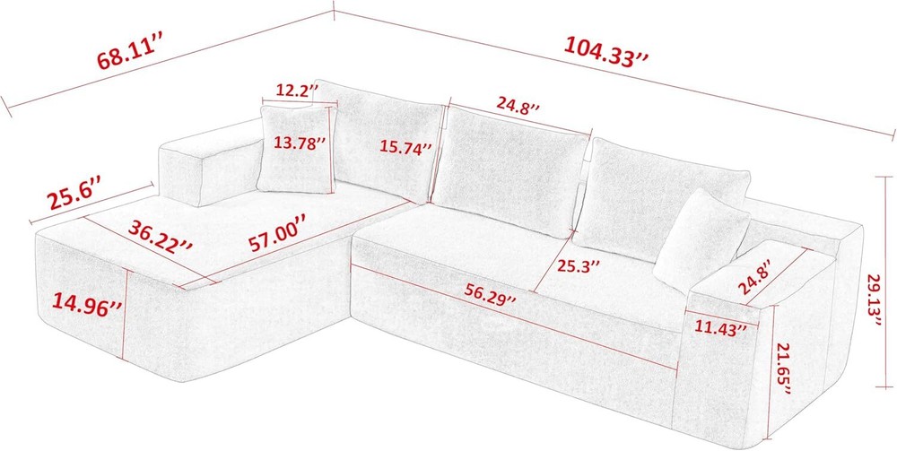 PA4_HTMLTop_Begin PA4_HTMLTop_End About this item 【Sherpa Fabirc Material】the sectional sofa is made of soft sherpa fabirc materials, come with nice finish and stitching. It is fine texture, soft and skin friendly, the material is breathable, long service life, wear-resistant, is easy to clean. 【Modern style design】the modern couch has an elegant L shape design, clean lines, and a broad profile that brings modern style to a living space. The smooth lines of the armrests and backrest are simple and modern, introduce a minimalist style to a apartment, villa, office or living room. It also creates such a cozy and welcoming atmosphere for your living room. 【Comfort Experience】 the L shaped sofa couch adapts a morden design concept, come with 2 pillow, adopts the ergonomic design to fit the curve of the body, it is provide a wide back support, thickness armrests, soft backrest and high elasticity seats, offer more comfort and softness feeling, you can release the fatigue of the day on the modern sofa. 【Sturdy and Durable】 The L shape sofa backrest is filling with highly elastic foam, the seat cushion is filling with high resilient case-hardened sponge, with strong rebound, is provides the strong support for the couch so that L shaped couch can support less than 800lbs. 【Easy to install】It only takes 20 minutes to complete the installation. Because the sofa is vacuum compressed and packaged. After receiving the sofa, first open the vacuum packaging, wait for the air to fill, and then tap the sofa with your hands to continue expanding and restoring its original appearance. It will take approximately 48 hours for the sofa to return to its original shape. We have detailed installation videos and recovery operation videos in our link, you can watch and learn. Sherpa Fabirc It come with nice finish and stitching. It is fine texture, soft and skin friendly, the material is breathable, long service life, wear-resistant, is easy to clean. Left Hand Lounge Offer more comfort and softness feeling, you can release the fatigue of the day on the modern sofa. Wide and deep seat The seat cushion is filling with high resilient case-hardened sponge, rebound sponge, comfortable support, durable and not collapsed. Thickened handrail Come with 2 pillow, thickness armrests design is elegant and prevents bumps. The armrests are enlarged and thickened, allowing the arms to rest freely and comfortably Payment Delivery details Terms of sales About us Return Payment We gladly accept PayPal, Visa, MasterCard, Amex, Discover and eChecks via PayPal. If payment is made by eCheck we will hold your shipment until the eCheck has cleared. Payment is required to be made within 7 days of ordering to avoid a UPI case. Please be sure to verify you have the correct shipping address on your order PRIOR to making payment as this is the address we must ship to. Delivery details We ship only within the 48 contiguous United States. We do not ship to Alaska, Hawaii, US protectorates (i.e.- Puerto Rico), PO boxes, or APO/FPO addresses. With warehouses on both coasts, we are able to reach most of our customers within a 3-business day timeframe. Occasionally a warehouse is out of the product and the warehouse further from you will have to fulfill the order which could make the ETA up to 6 days. Some of our larger product (such as outdoor furniture sets) is best shipped via LTL (Less than Truck Load) freight to best ensure safe delivery, and once the shipment arrives, FedEx will require an appointment to deliver the order, so please include a phone number in your order you can be reached at. Someone must be present to take delivery of LTL shipments and sign for the delivery ( drivers only offload the product into the driveway; any additional help by the driver will require an additional charge ). Please double check the delivery address prior to ordering to ensure your package reaches its intended location. We can only ship your order to the PayPal verified address given to us at the time you checkout. If you contact us with a change of address and we haven't processed the order yet, we can make the change. If the order has already been processed and is on the FedEx truck (even though the order doesn't show shipped in the marketplace), or has movement on FedEx.com, you only need to create an account on https://www.fedex.com/us/delivery/ , and you will be able to redirect your package(s). Terms of sales FAQs 1. I just purchased an item from you, when will it ship? If purchased by 12:00pm PST on a business day it will more than likely ship the same day, otherwise, it will usually ship the next business day 2. My item has been marked as shipped and I have a tracking # but it is not showing in FedEx's shipping system, what's wrong? Once a label is printed and we have staged your item for FedEx to pick-up from our warehouse it will typically take up to 24 hours for it to show up in FedEx's tracking system. If after 24 hours your shipping information has not been updated, you can contact our Customer Service Department for further assistance. 3. Can you ship to my country / PO Box / Hawaii / Alaska / Puerto Rico / APO? At this time we only offer shipping to a physical street address located in the 48 continental states. 4. Aosom's Cancellation Policy We try to process orders within one business day (excluding Sat, Sun and holidays) whenever possible, so if you cancel the same day, we should be able to keep the order from shipping and have you refunded within 1-2 business days. If you cancel and the product has already shipped, we will attempt to have the carrier RTS (Return To Shipper) the product back to us, but this is not always successful and we will need for you to monitor the tracking to refuse the product if they try to deliver. Once the item is confirmed en route back to us, your refund will be processed within 2-3 business days. About us We are a modern manufacturing enterprise focused on sofa production, equipped with
