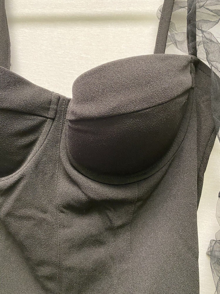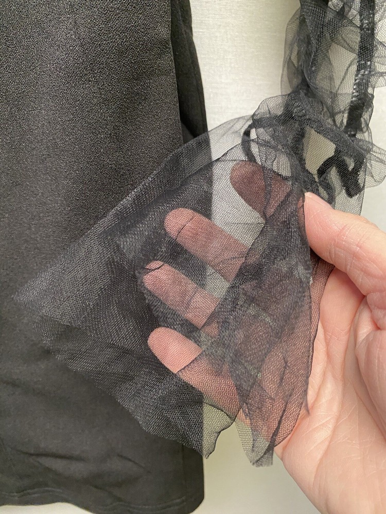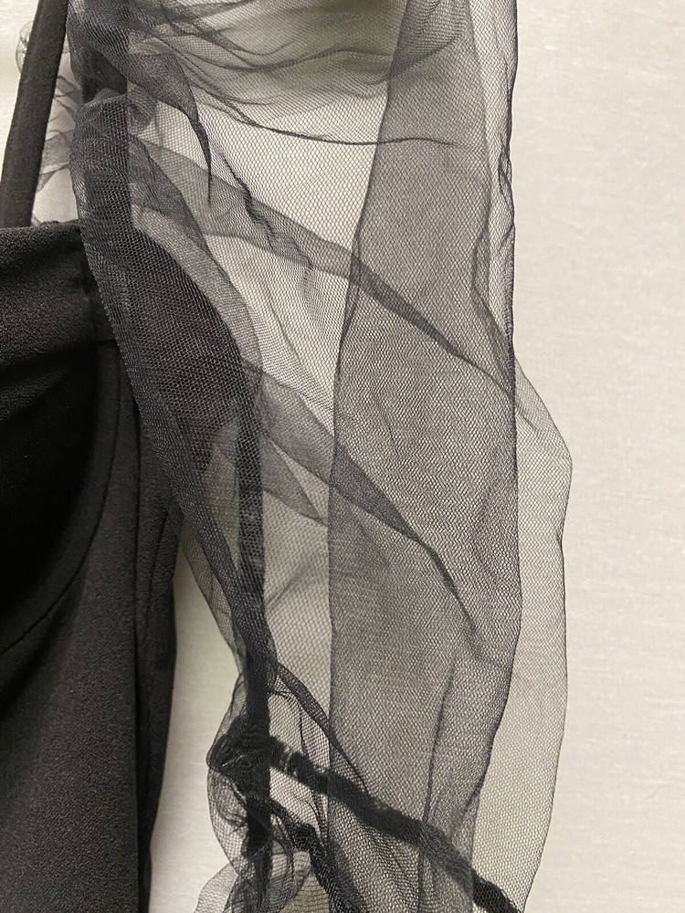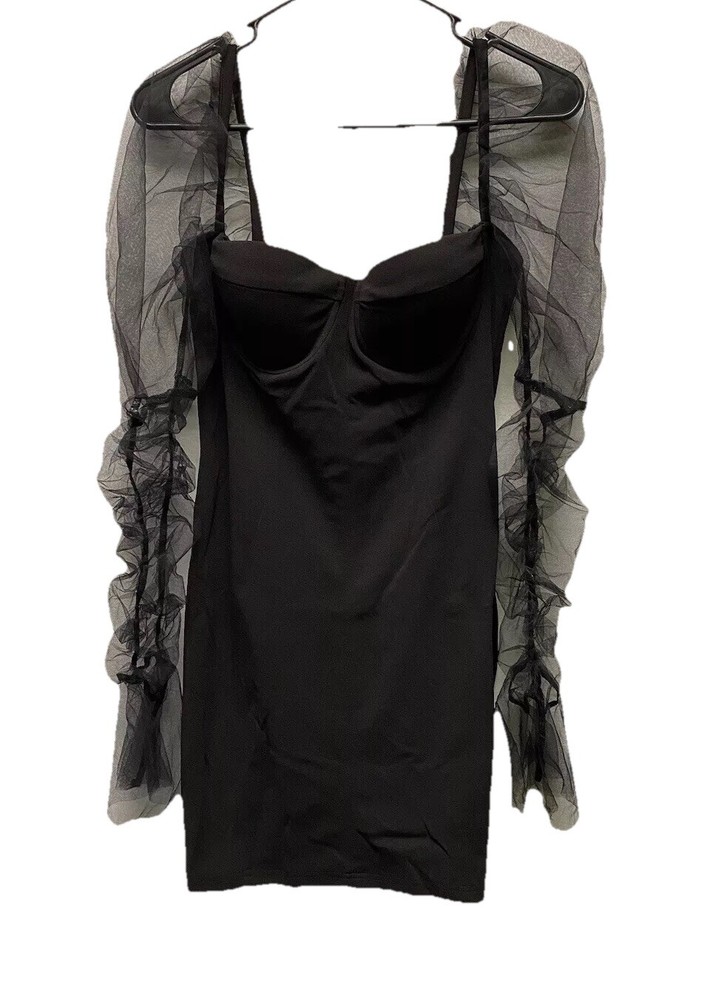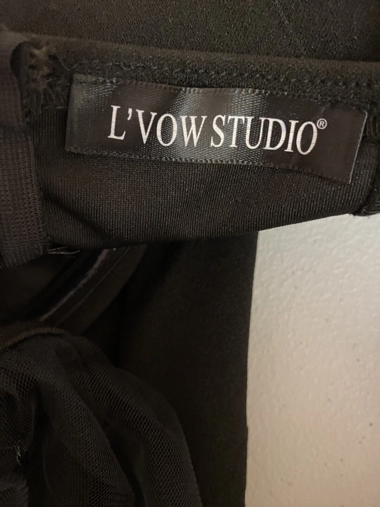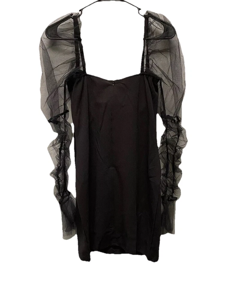 Measurements: Pit: 16 / Length: 32 This is in excellent condition. Please refer to the photos for more information and details. Embrace your inner witch with this stunning black mesh mini dress from L'Vow Studio. Featuring a sweetheart neckline, long balloon/rouched sleeves, and a zip closure, this dress is perfect for any occasion - from casual outings to Halloween parties. The dress is made of a comfortable blend of polyester and cotton, with removable pads and a collarless design. The dress is accented with a unique logo and is available in size L for women. Whether you're going for a gothic or vampire look, this dress is the perfect addition to your wardrobe. So why wait? Add this dress to your collection today and show off your spooky side!