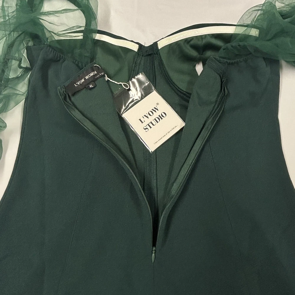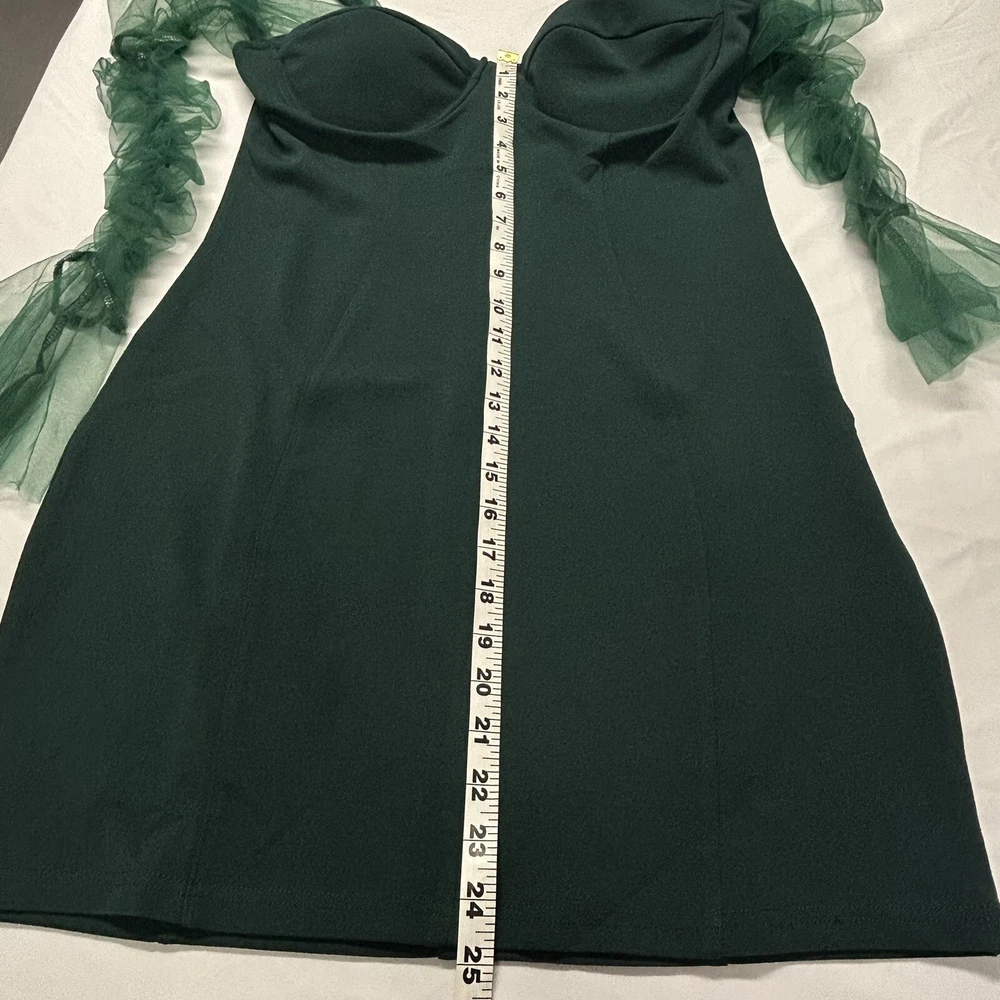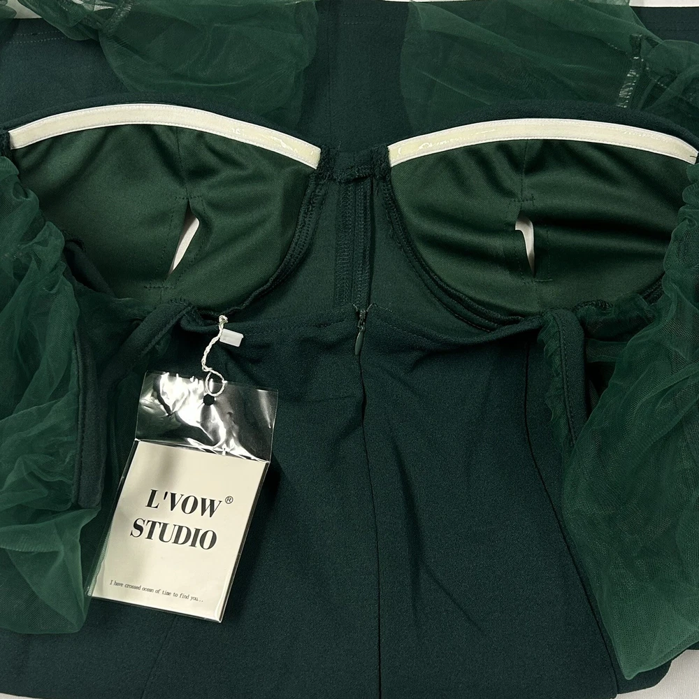 L'Vow Studio Women's Mini Dress Long Sheer Puff Sleeves Stretchy Green Size XL New with tags, no flaws Style Profile: sexy, bodycon, clubwear, party Size: XL Approx. measurements (fabric is stretchy) Bust: 34 in Waist: 34 in Hips: 38 in Sleeve: 28 in Length: 28 in Features: Tulle puff sleeves Sweetheart neckline Hidden back zipper closure Medium brazier padding with removable inserts Slip resistant trim on upper corset Elastic at cuffs Polyester/Spandex Hand Wash One business day handling time Smoke-free home Thanks for looking!