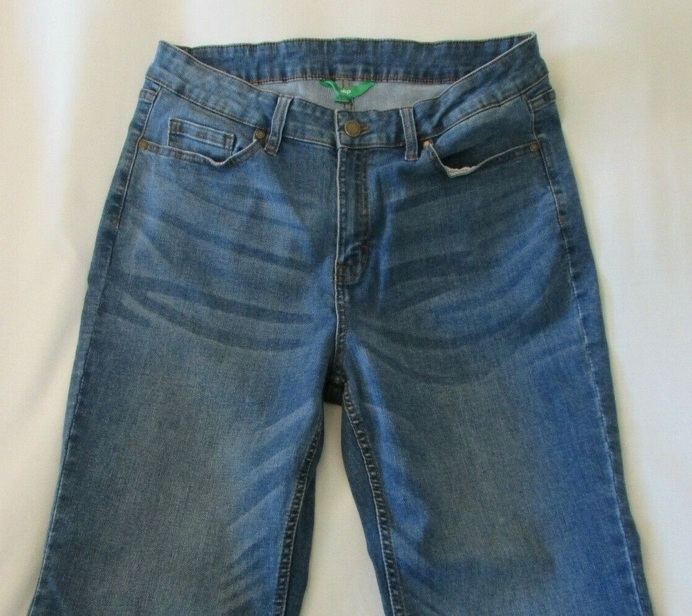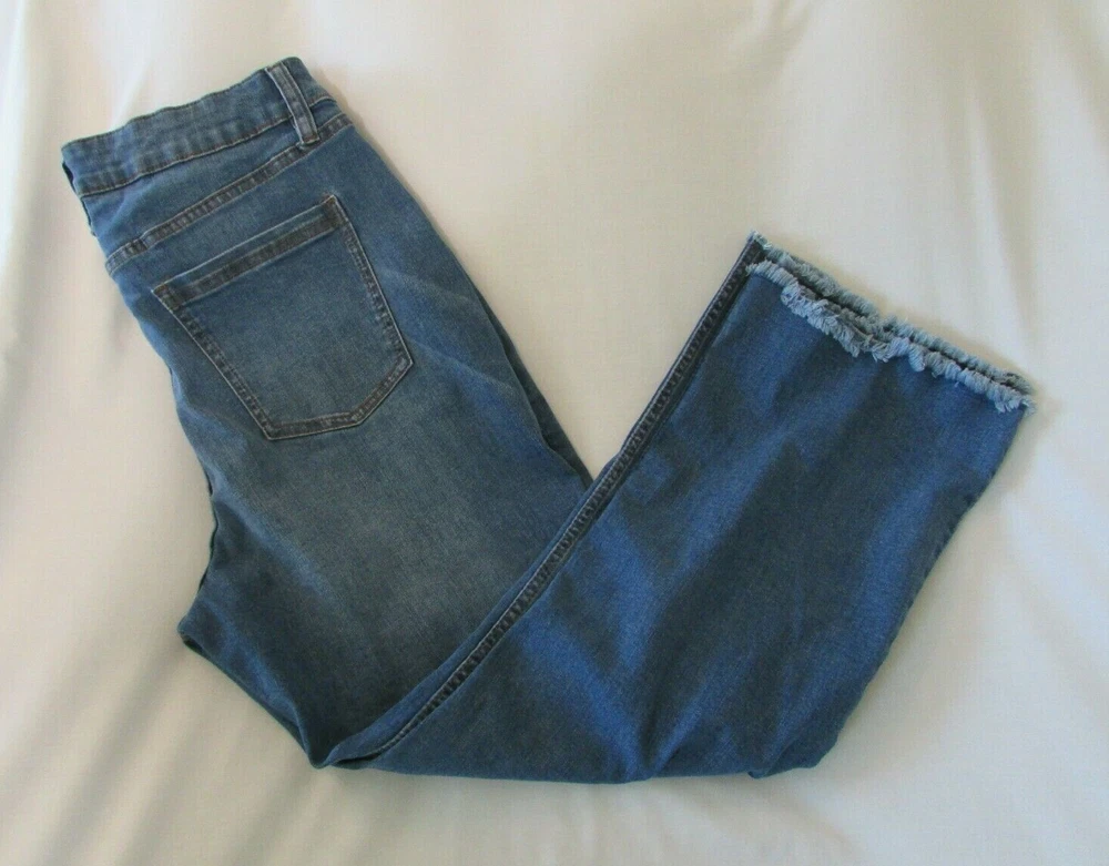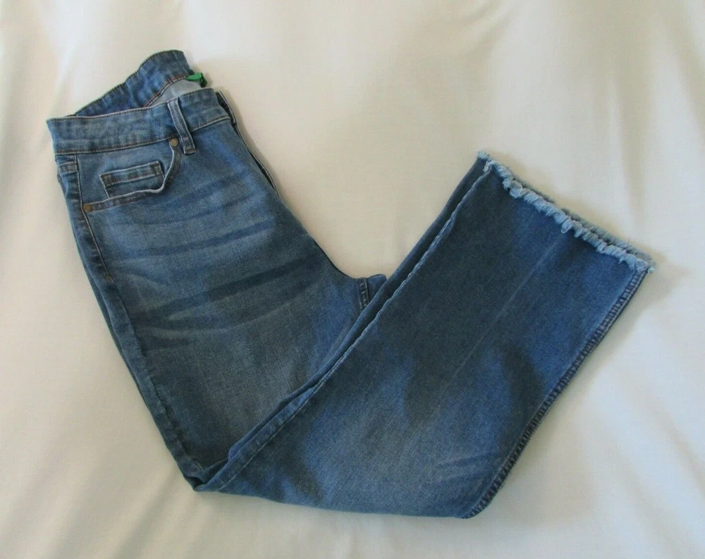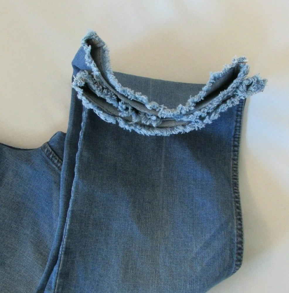 These Ladies "DIP" Blue, Distressed, Raw Hem, Boot Cut Jeans are in very nice condition. They have the classic five pockets with rivets at the stress points on the front two. The coin and back pockets are sewn on. They have a metal button and zipper closure along with five belt loops that are all well attached and working as they should. The crotch and knees are in very nice condition. The bottoms of the pant legs are raw and never been hemmed and in very nice condition. They are faded, both front and back, giving them that distressed look. I don't see any stains, tears, holes, snags or fraying. They are made of 62% Cotton, 23% Polyester, 13% Viscose and 2% Spandex for a nice comfortable fit. The tag says they are a size 12. The actual measurements with them laying flat are: 30 1/2 inch waist, 11 1/2 inch rise and 25 inch inseam. If you have any questions please feel free to contact me. I will answer as quickly as possible. Shipping within the United States is $10.00 , which includes tracking and delivery confirmation. I usually ship within 1 business day of receipt of payment. Please submit payment within 3 days of purchase. If payment or contact about payment is not made within 3 days, eBay will be notified and negative feedback will be left. Also, make sure shipping address is correct with PayPal. I ship to confirmed addresses only. Thanks for shopping, Have a Great Day!