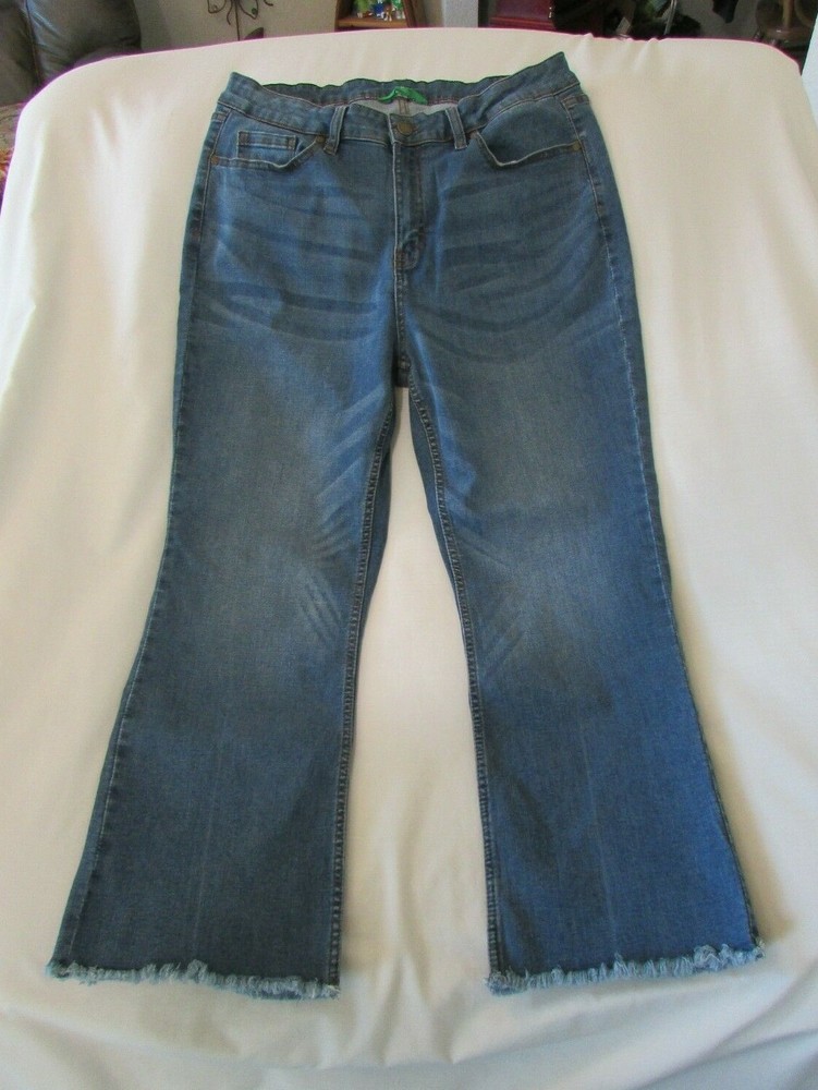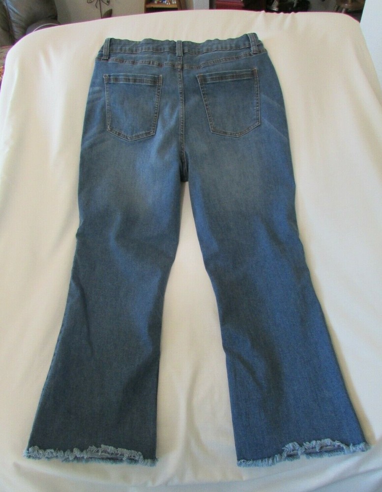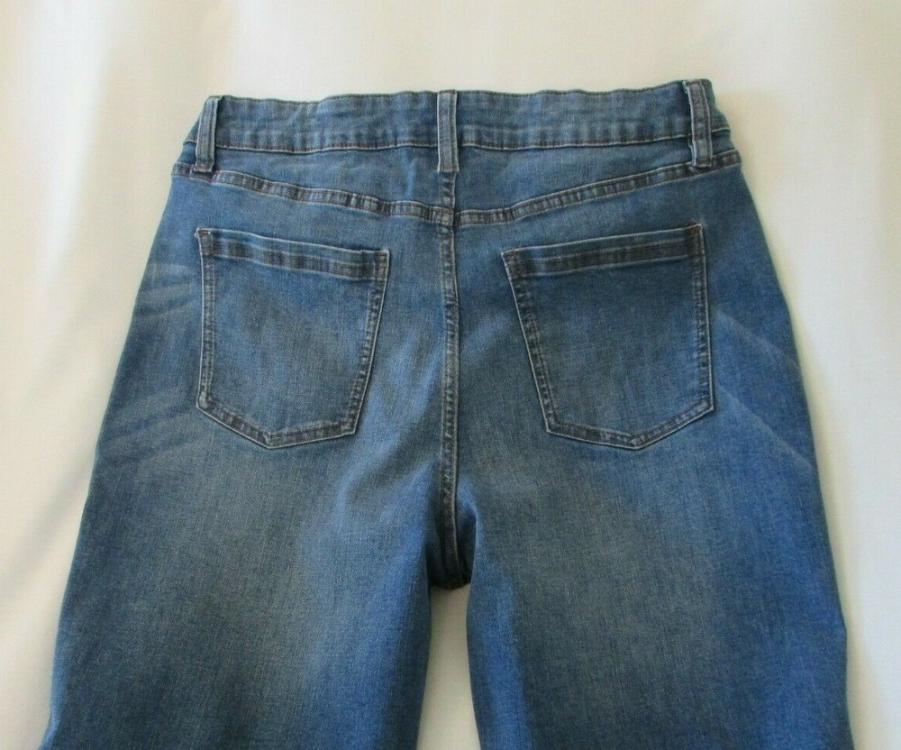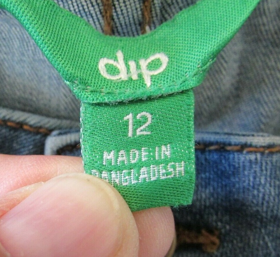These Ladies "DIP" Blue, Distressed, Raw Hem, Boot Cut Jeans are in very nice condition. They have the classic five pockets with rivets at the stress points on the front two. The coin and back pockets are sewn on. They have a metal button and zipper closure along with five belt loops that are all well attached and working as they should. The crotch and knees are in very nice condition. The bottoms of the pant legs are raw and never been hemmed and in very nice condition. They are faded, both front and back, giving them that distressed look. I don't see any stains, tears, holes, snags or fraying. They are made of 62% Cotton, 23% Polyester, 13% Viscose and 2% Spandex for a nice comfortable fit. The tag says they are a size 12. The actual measurements with them laying flat are: 30 1/2 inch waist, 11 1/2 inch rise and 25 inch inseam. If you have any questions please feel free to contact me. I will answer as quickly as possible. Shipping within the United States is $10.00 , which includes tracking and delivery confirmation. I usually ship within 1 business day of receipt of payment. Please submit payment within 3 days of purchase. If payment or contact about payment is not made within 3 days, eBay will be notified and negative feedback will be left. Also, make sure shipping address is correct with PayPal. I ship to confirmed addresses only. Thanks for shopping, Have a Great Day!