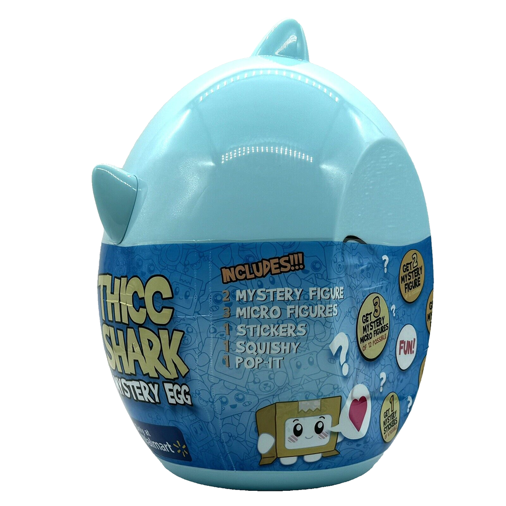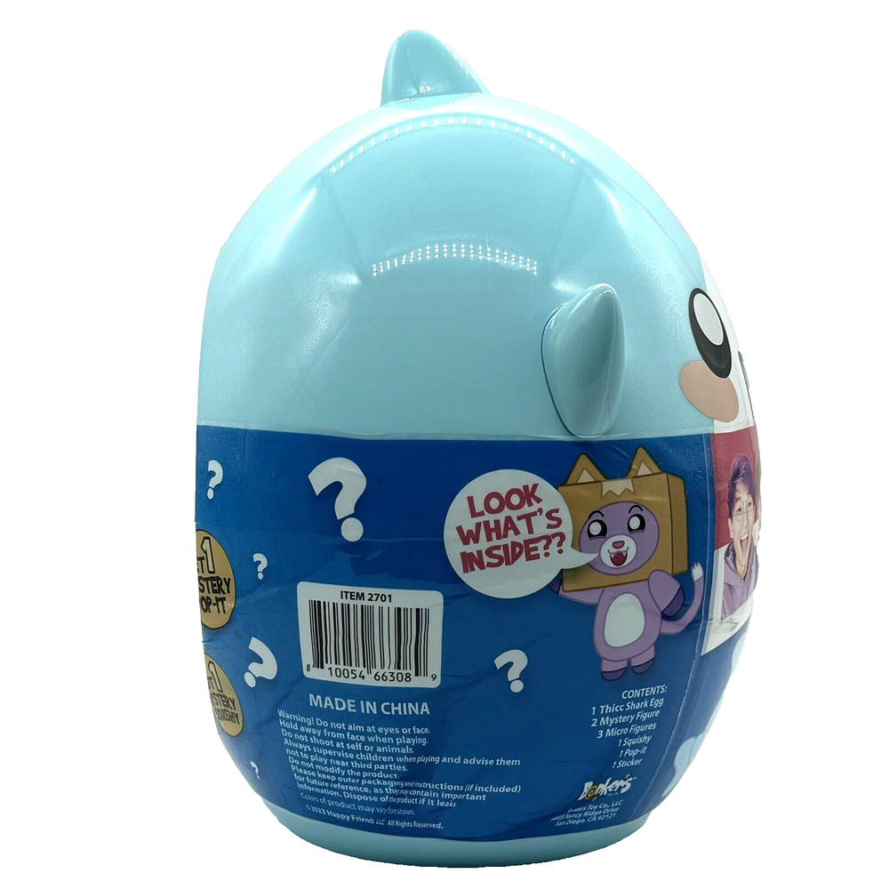 Lankybox Bonkers Toys Giant Thicc Shark Mystery Egg Kids Surprise Ultimate Unboxing : LankyBox Giant Thicc Shark Mystery Egg by Bonkers Toys - a thrilling surprise for kids Brand New : Factory sealed in original packaging - unopened and ready for fun Contents : Includes 2 mystery figures, 3 micro figures, a squishy, a pop-it, and a sticker (exact items may vary) Thicc Shark Case : Giant shark-shaped container doubles as a collectible and storage for LankyBox toys LankyBox Vibes : Captures the high-energy fun of Justin and Adam’s YouTube adventures Ages 3+ : Perfect for young fans of the wildly popular LankyBox channel Collectible Appeal : Exclusive toys not found elsewhere - a must-have for LankyBox enthusiasts Fast Shipping : Ships quickly and securely Crack open the fun with this brand-new LankyBox Thicc Shark Mystery Egg - buy now for an epic surprise! Store Policy's Fast Handling Time! Money Back! Free Return Shipping! Questions? We reply to questions 7 days a week.