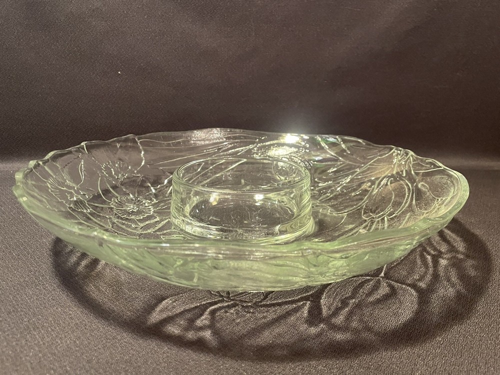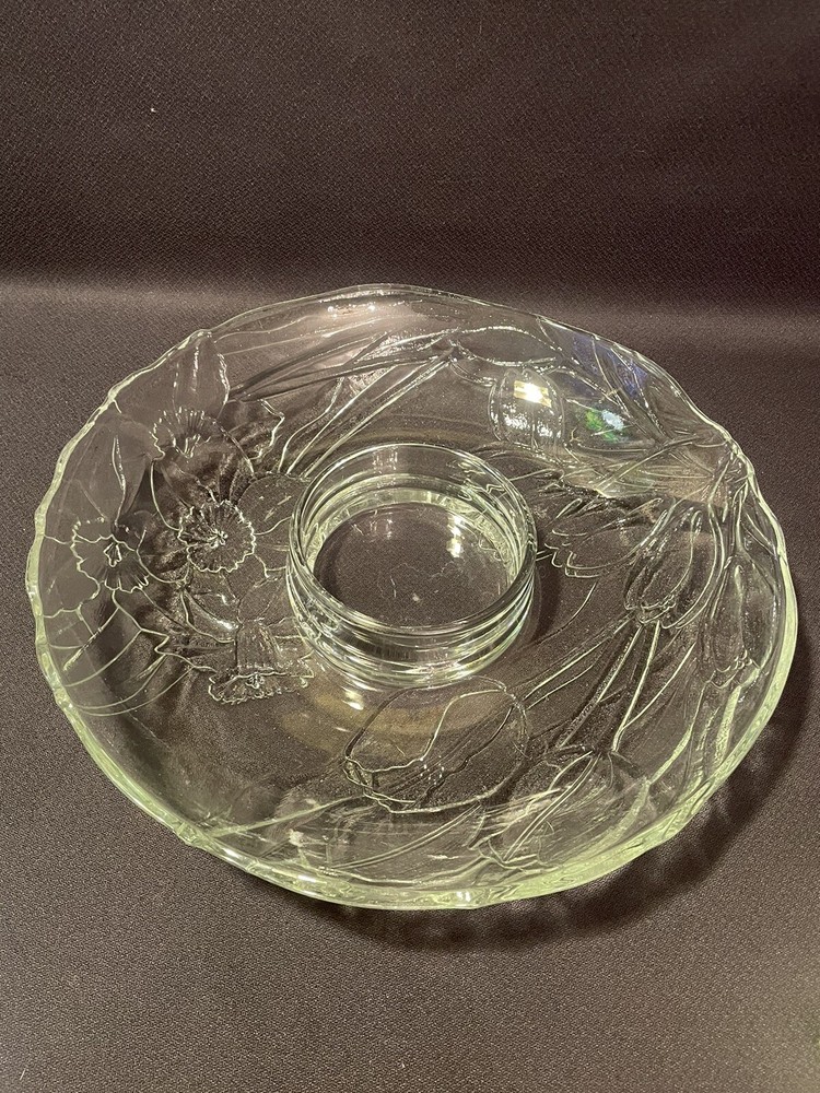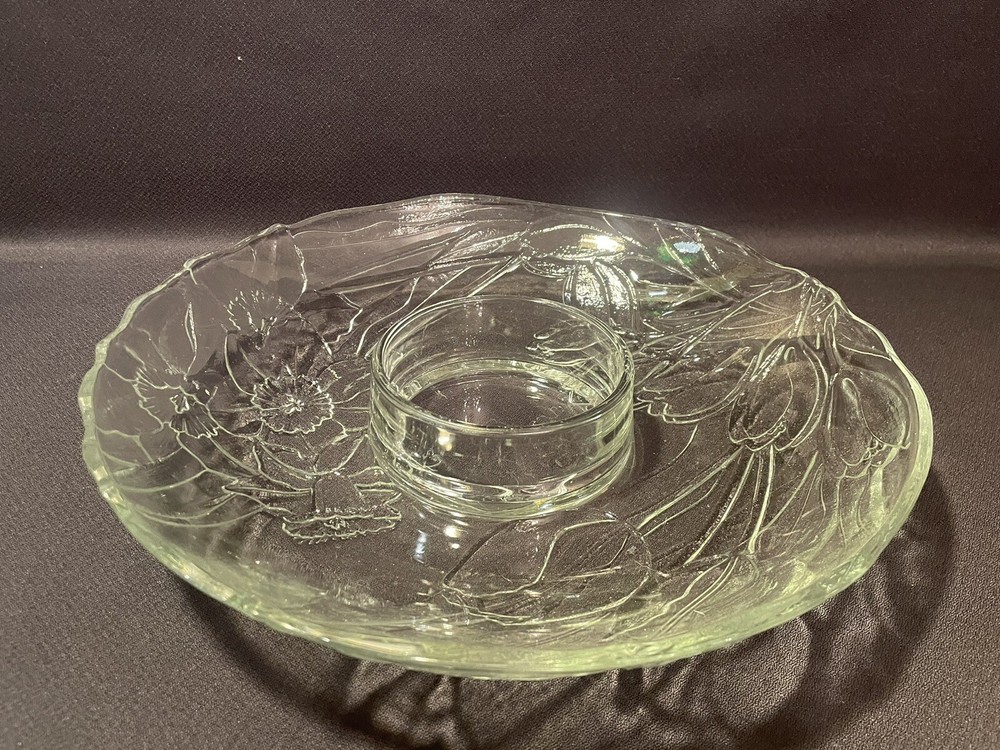 Large Art Glass Floral Chips & Dip Candy Dish Platter Serving Tray. *Pre-owned , good condition ! Normal wear No chips ! *Dimensions: 12 3/4” wide, 2 3/4” deep  Professional refinishing and upholstery services are available upon request. PRICES are established BASED ON CONDITION of each item and what the CURRENT MARKET VALUE of the item is. Please be sure to READ EACH ITEM DESCRIPTION CAREFULLY to be certain your’re aware as the buyer that you are purchasing an item that “has been tested” or is “as is” untested. IF AN ITEM IS AS IS UNTESTED, it is priced accordingly. FURTHER TESTING WOULD BE UP TO THE uBUYER. Lamps, and electronic items are sold with original wiring UNLESS SPECIFICALLY NOTED. It is up to the buyers discretion to rewire. Always suggested when adding vintage items to the home, but not always necessary. All LAMPS are tested before being listed for sale, and are described exactly as they are. Shipping prices on large items such as furniture are just estimates. Before making purchase, email to get an exact quote and I will edit listing to accommodate exact shipping costs to your location, and determine method of transport. -FEEL FREE TO EMAIL OFFERS. Just because I don't have the best offer option does not mean you cannot email me with a reasonable offer. Some items I have no room to negotiate. -Personal delivery to the northeast region is available and price will have to be negotiated before purchase. -Buyer pays shipping, unless you come to pick the item up. -Please feel free to email me any questions regarding any item in my store. If you are watching an item and it is no longer available it is because it was sold in my retail location, South Ave Treasures. All items are for sale in multiple places. -All items are sold as is and will be described as accurately and exact as possible. Photos will include as much of the piece as possible including close ups of any flaws. I do not issue returns unless the situation calls for it. I take pictures of packing before it is sent out to ensure proof of proper packing. -I will get your purchased item en route within three business days after confirmed purchase. Freight shipping will be up to the buyer but I will be glad to assist you in finding a safe, trustworthy method of shipment for your item. All items available for local pickup. I generally use Plycon Group for larger items as they have been an expensive but excellent method of shipping. Feel free to use your own method. I have a Greyhound terminal at my zip code 14620 and will be happy to use them to ship items. After a successful transaction positive feedback would be greatly appreciated as I know that if you have purchased from my store then you will be a happy customer. I will leave positive feedback as soon as payment is issued to my pay pal account. Please be sure to check out my other items in my eBay store NYRetRoSouth. Thank You for looking!