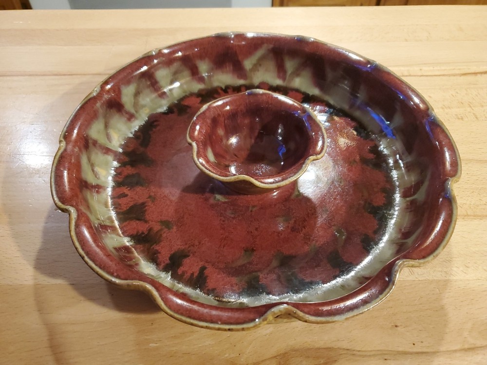 Multi-Colored Chip And Dip Bowl 11-3/4" EUC. Condition is Used. Shipped with USPS Ground Advantage.