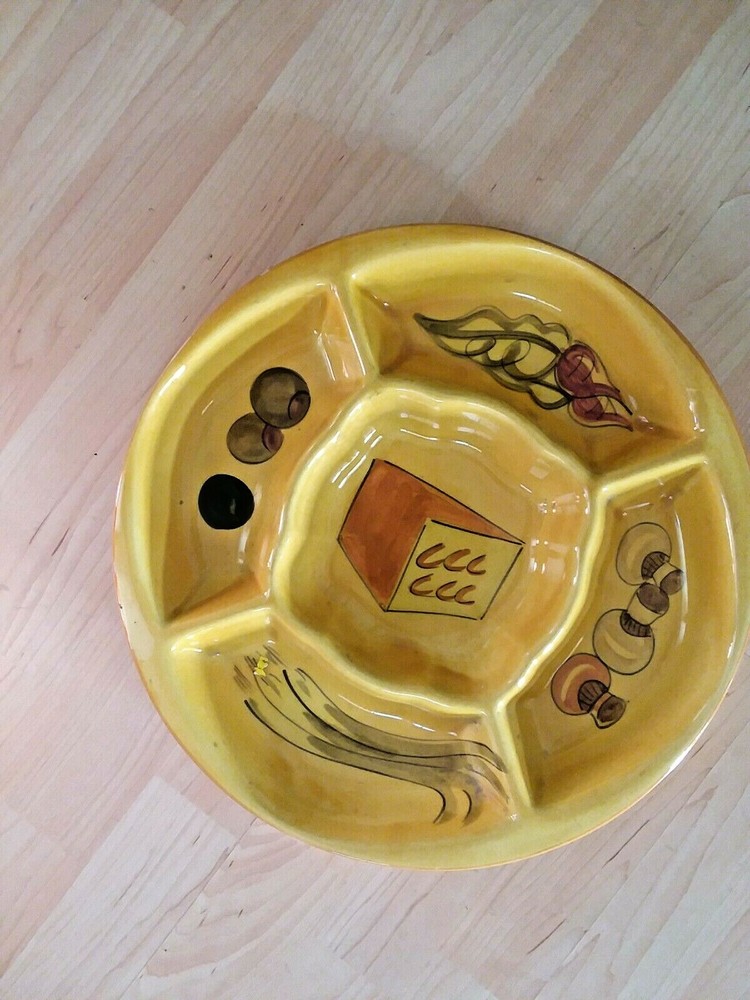 This is a large, beautiful vegetable dip tray, Vintage 1970 Los Angeles Potteries # 415. Measures 14 " Across and 1 3/4" Deep. Very good condition considering its age. Shipped with USPS Priority Mail....