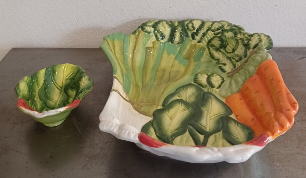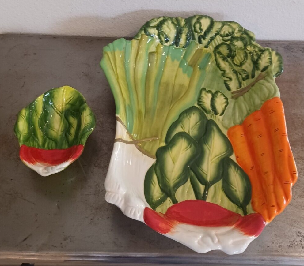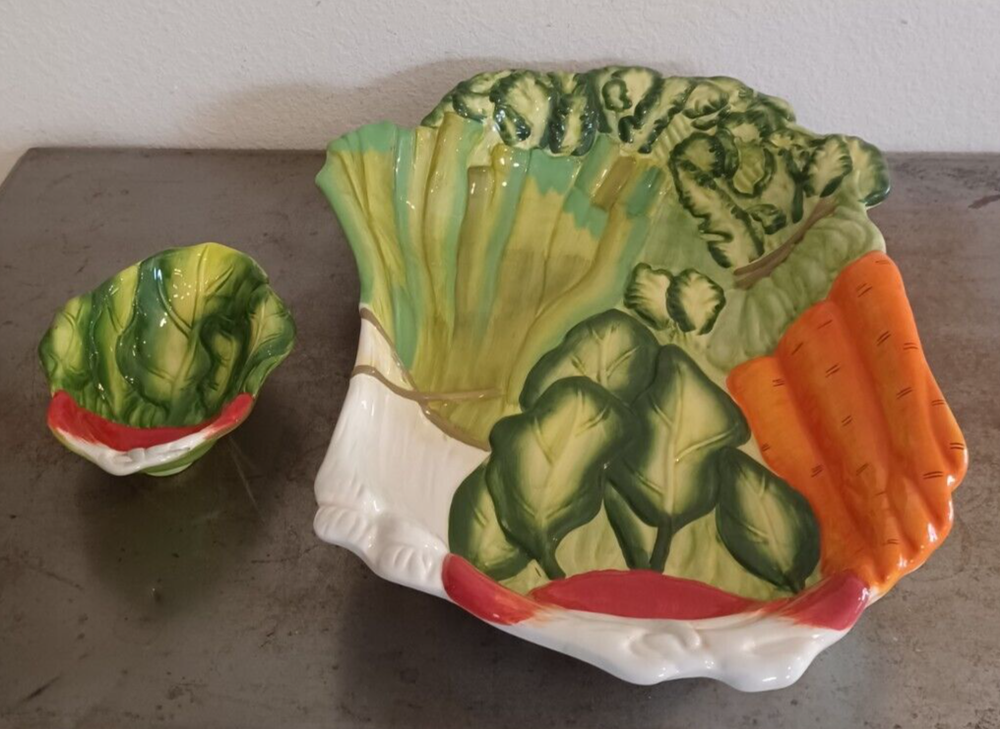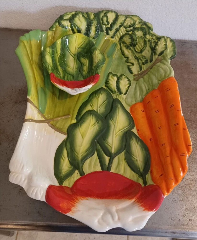 Large Certified International By Judy Phipps Serving Tray Platter & Dipping Bowl. The serving platter tray measures at 19"x13.5". Height is 3.2". The dipping bowl measures at 7.1"x5.25". Height is 2.1...