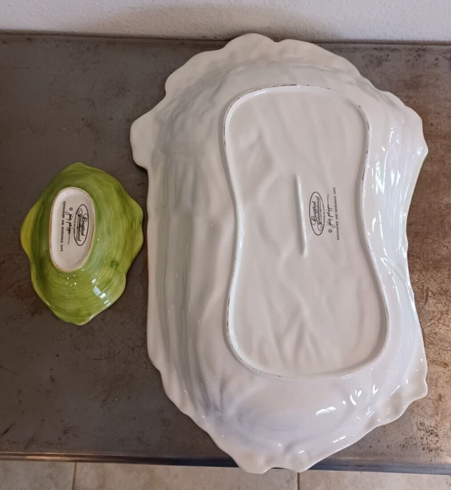 Large Certified International By Judy Phipps Serving Tray Platter & Dipping Bowl. The serving platter tray measures at 19"x13.5". Height is 3.2". The dipping bowl measures at 7.1"x5.25". Height is 2.1".