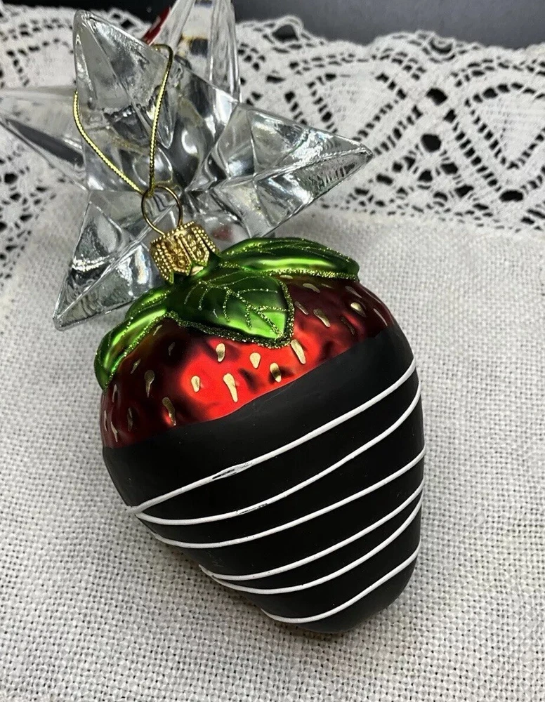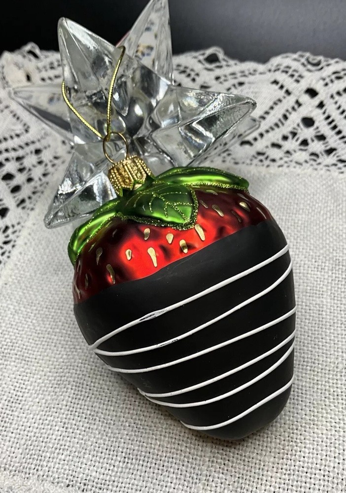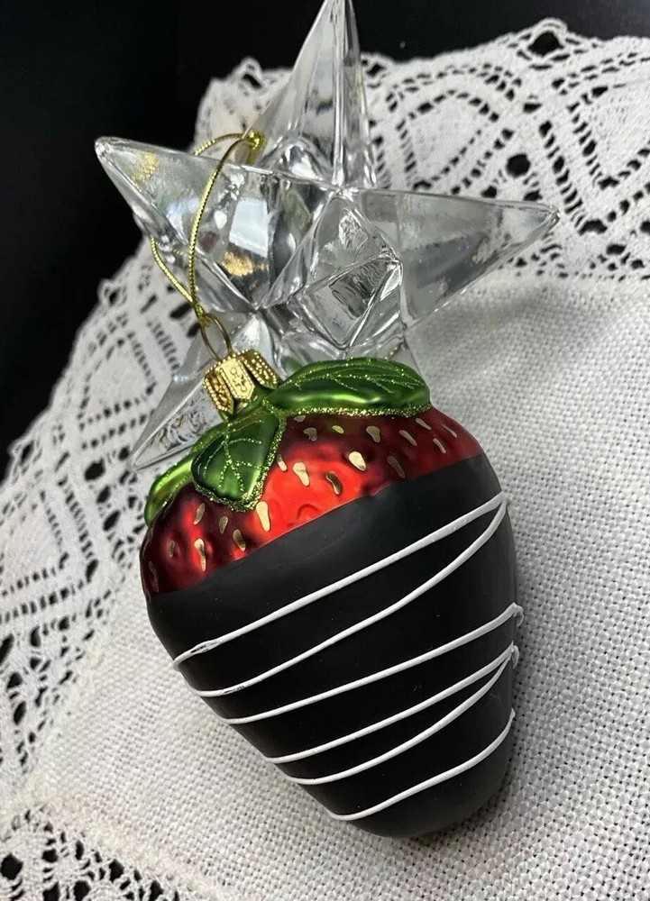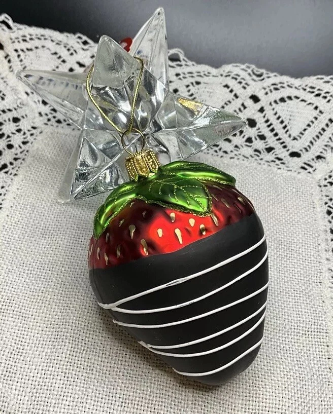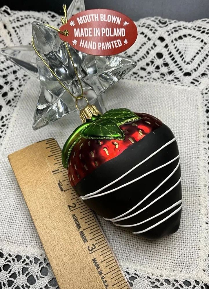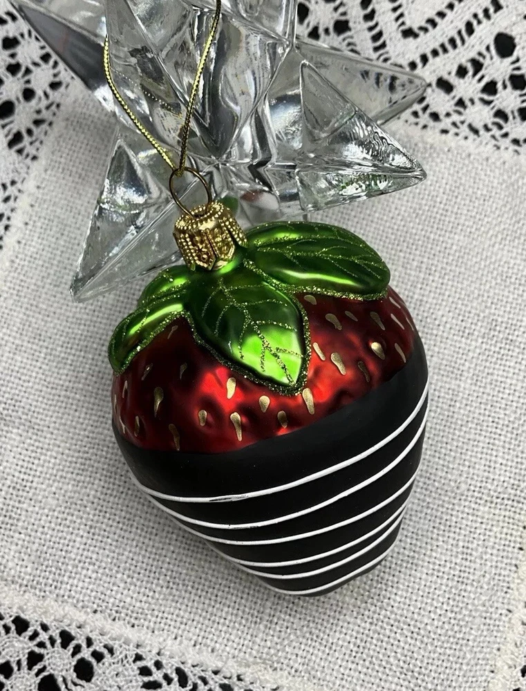 Offered here is a beautiful Made in Poland, mouth blown, hand painted, mercury glass Strawberry Ornament. It is very neatly and authentically painted. It is in brand new condition with its tag and has no cracks, chips, finish or paint loss or imperfections. Measures 3.5 inches tall including hanger cap. Please feel free to contact me with any questions. Thank you for your interest!