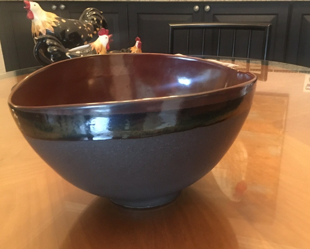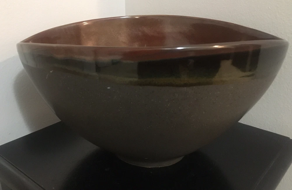 Large Football Shaped Brown Drip Glaze Bowl with Speckles. Condition is Used. No chips, cracks or crazing. Shipped with USPS Priority Mail.