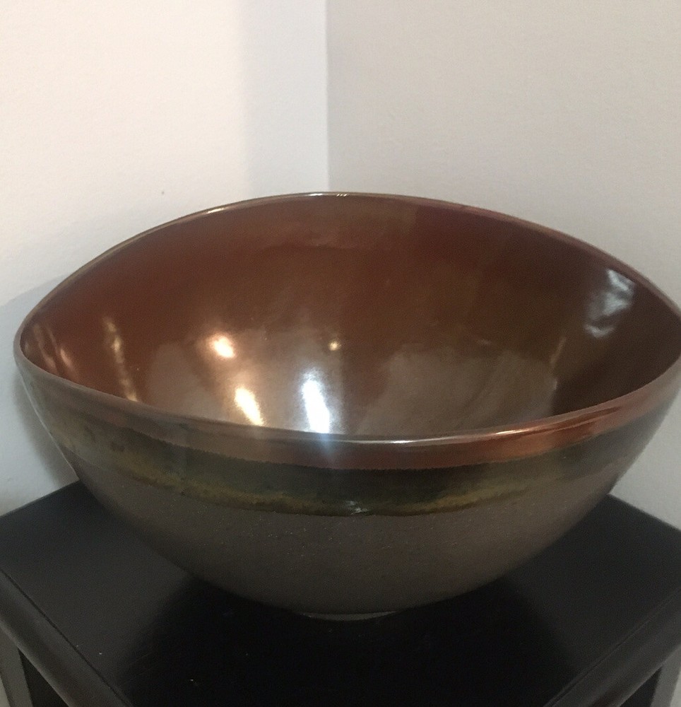 Large Football Shaped Brown Drip Glaze Bowl with Speckles. Condition is Used. No chips, cracks or crazing. Shipped with USPS Priority Mail....
